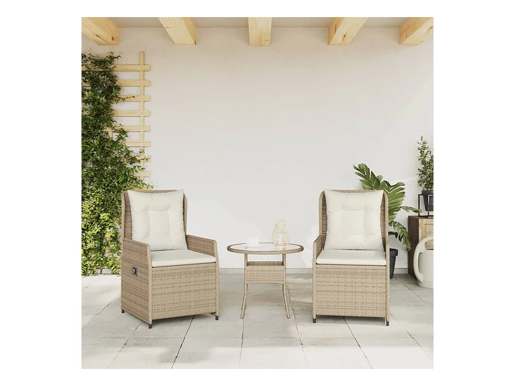 Cadeiras de jardim reclináveis 2 peças com mesa vime PE bege