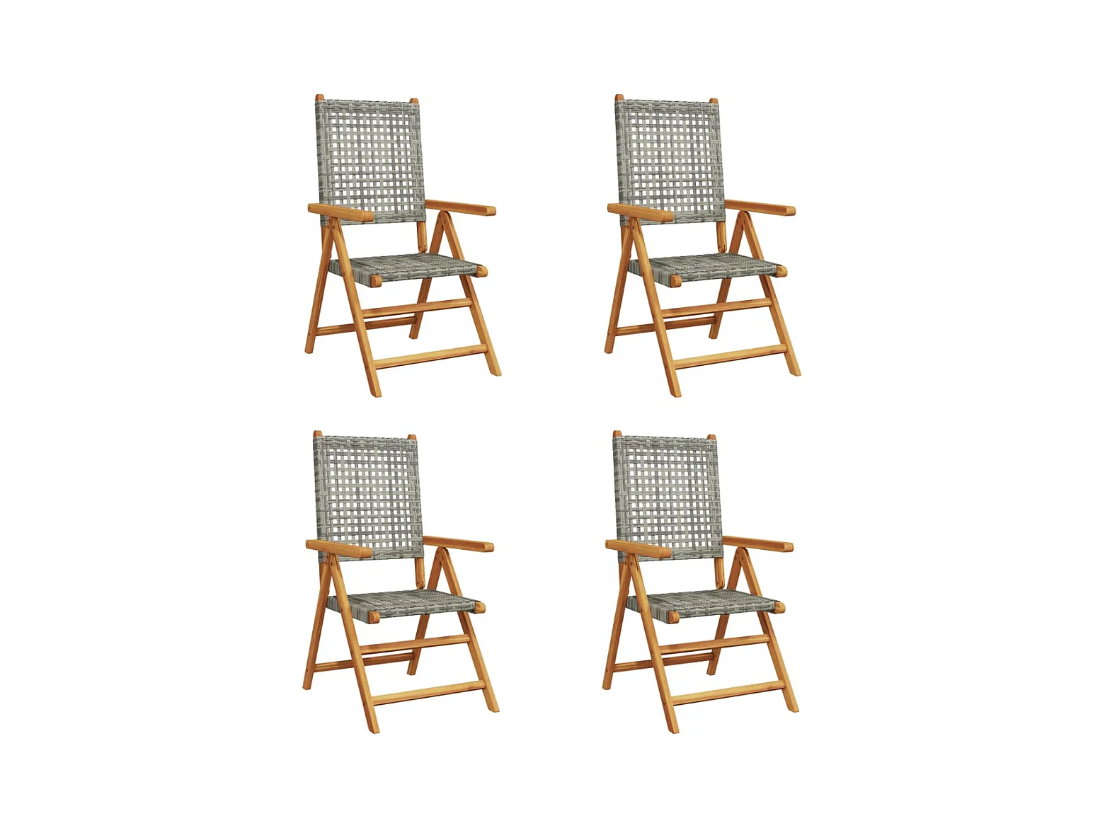 Cadeiras jardim reclináveis 4 pcs vime PE/madeira maciça cinza PT158072