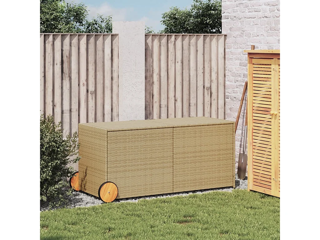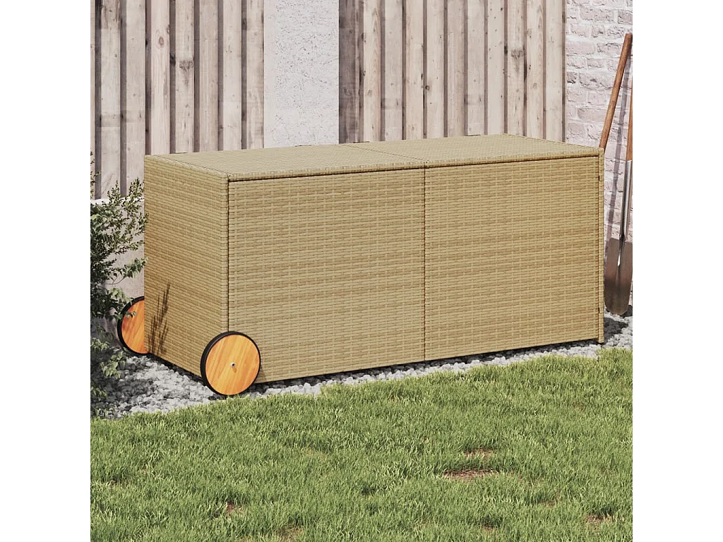 Caixa arrumação p/ jardim com rodas 283L vime PE mistura beges PT251516