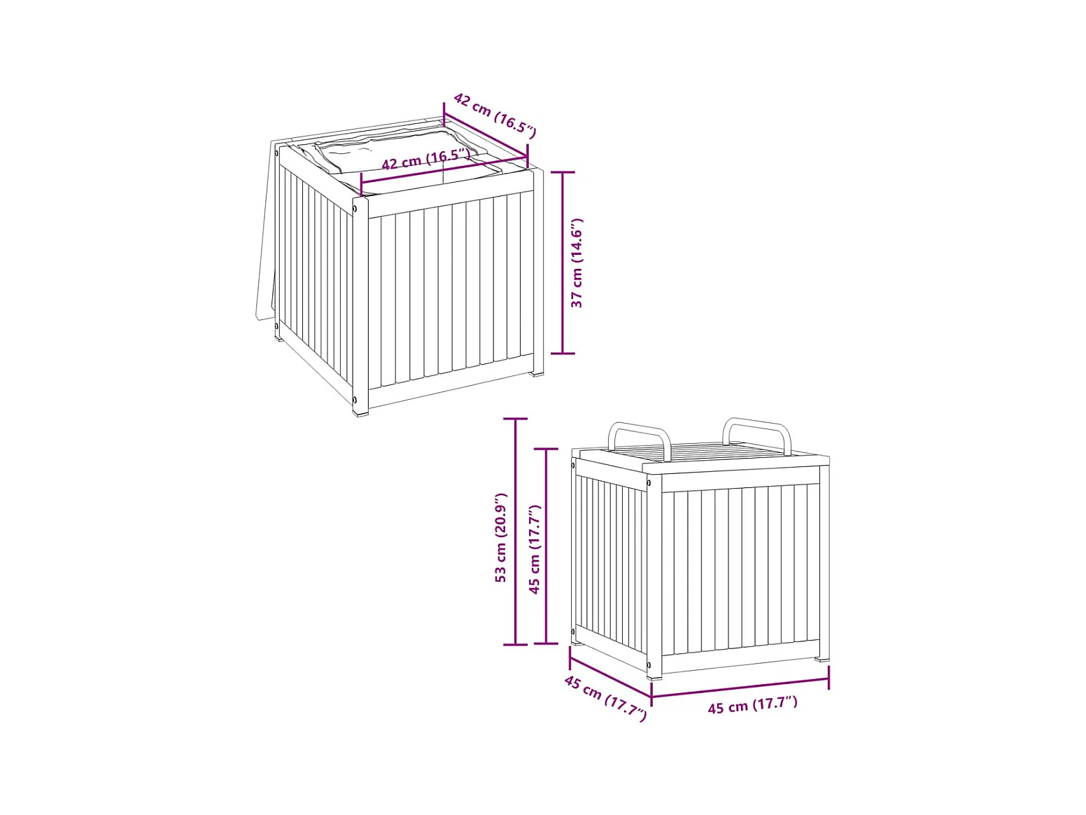 Caixa p/ almofadões de exterior 45x45x45/53cm acácia maciça/aço PT646208
