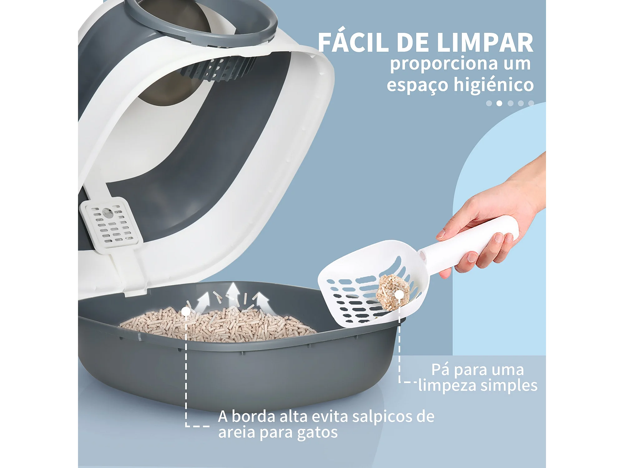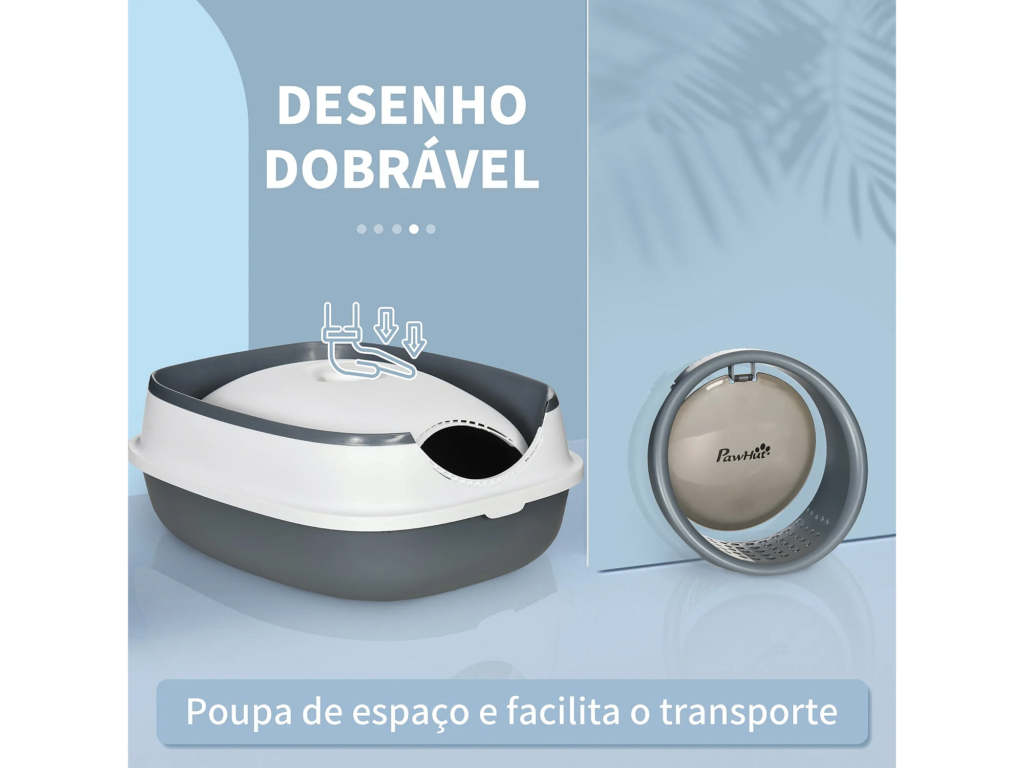 Caixa de Areia Dobrável PawHut para Gatos com Pá e Design Fechado - 52x41x38 cm em Branco e Cinza