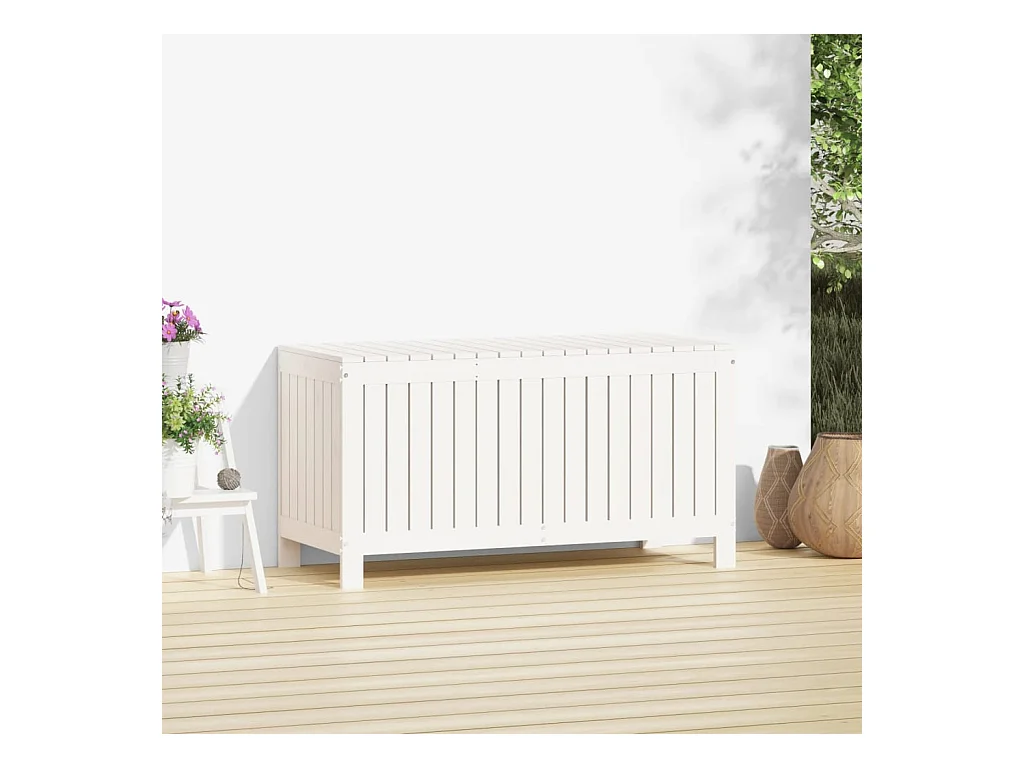 Caixa de armazenamento de jardim branca 115x49x60 cm madeira de pinho