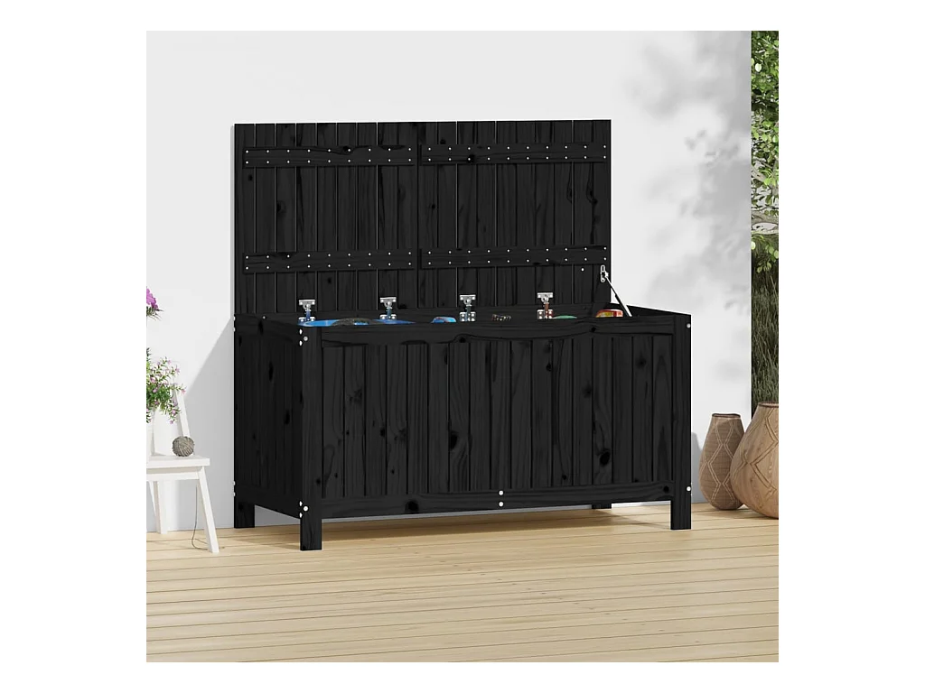 Caixa de armazenamento de jardim preta 121x55x64 cm Madeira maciça de pinho