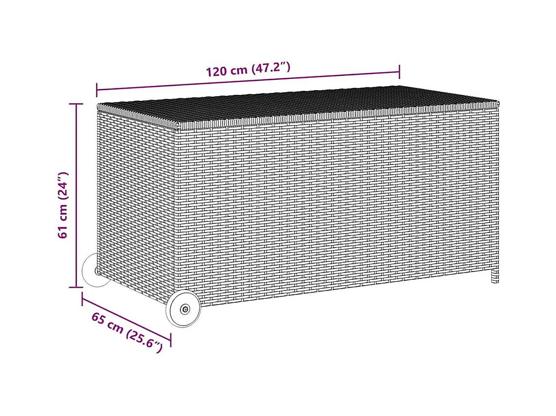 Caixa de arrumação para jardim 120x65x61 cm vime PE preto
