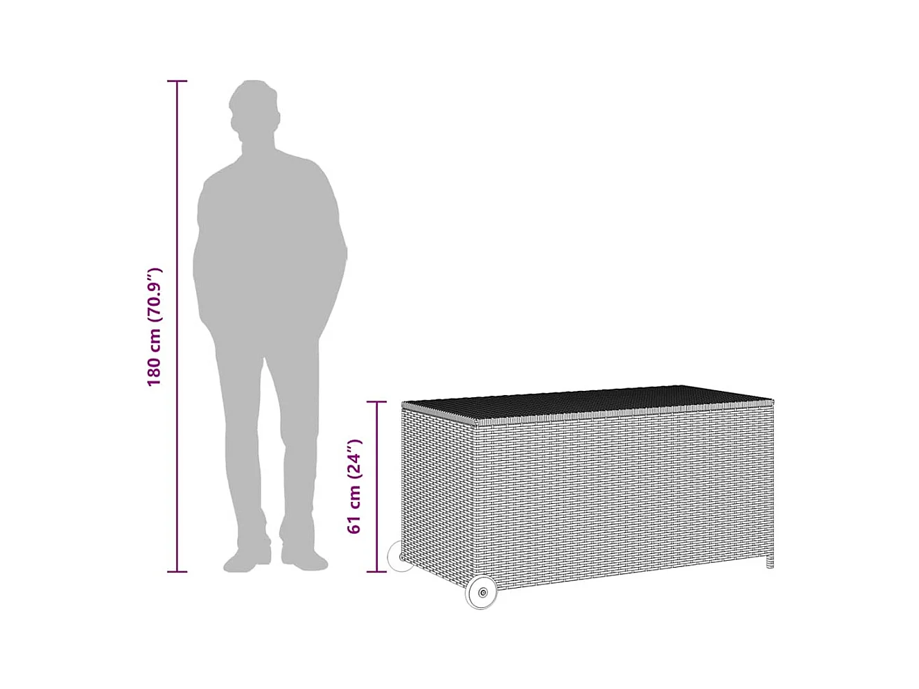 Caixa de arrumação para jardim 180x90x70 cm vime PE cinzento