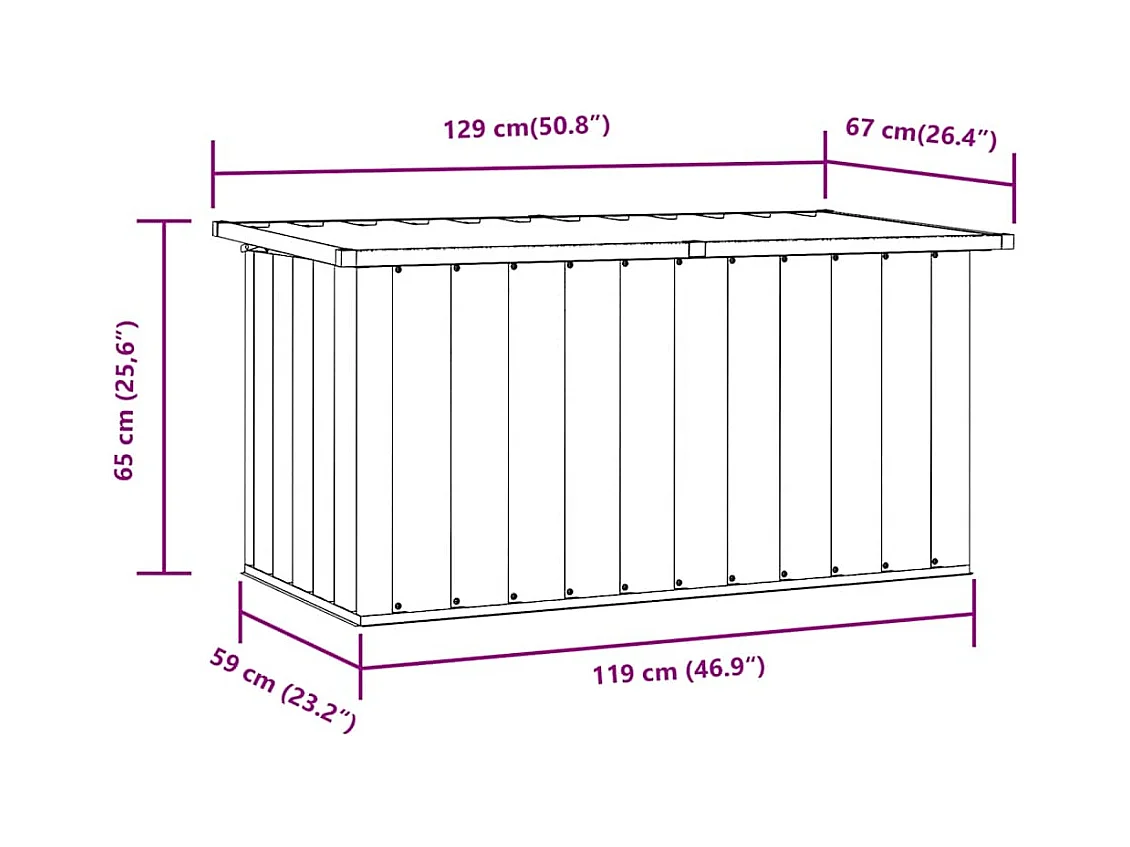Caixa de armazenamento para jardim marrom 129x67x65 cm
