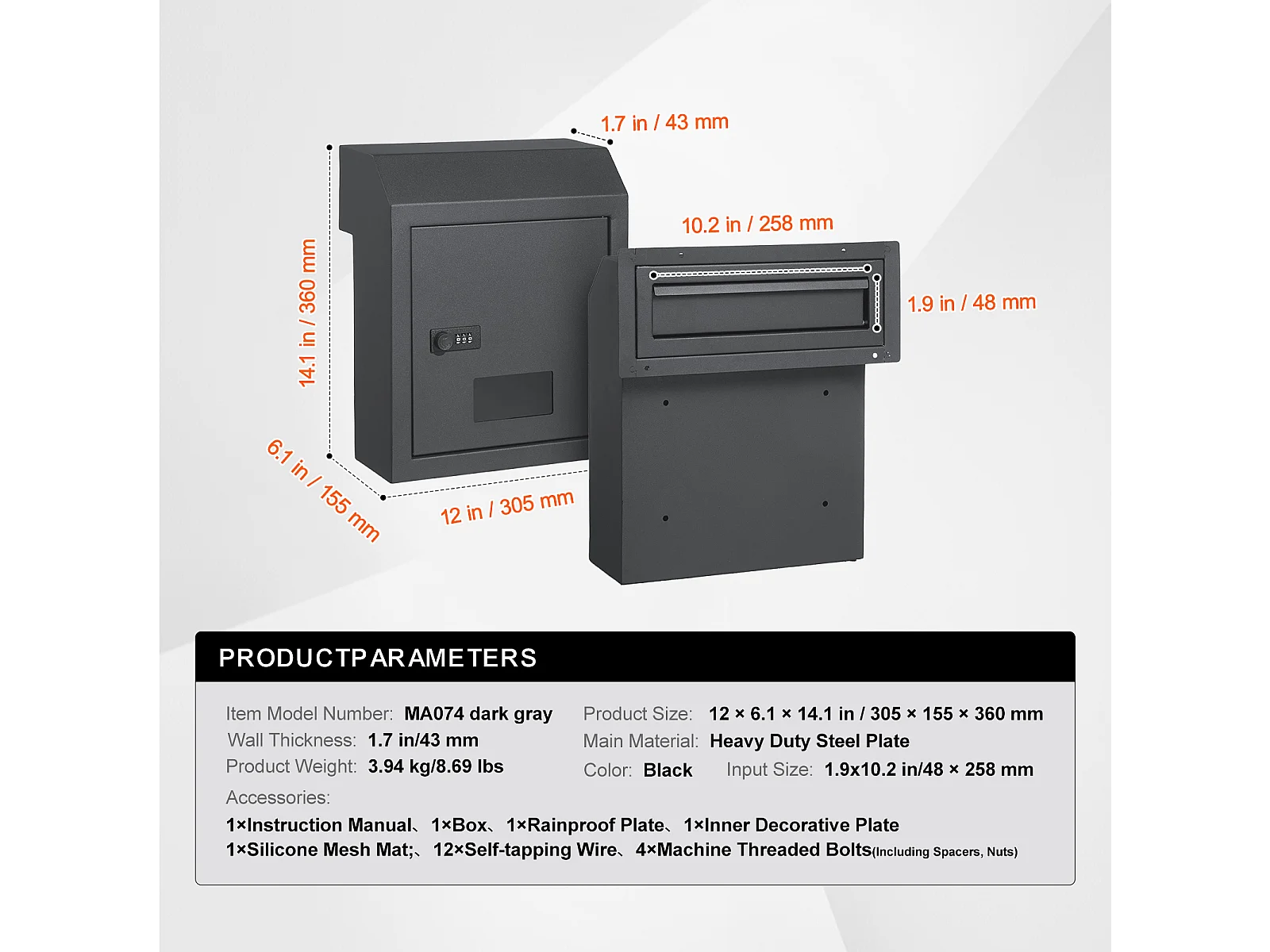 Caixa de Correio Com Chave Através da Porta SucceBuy, Fechadura de Combinacao, Cinza Escuro – Armazenamento Seguro e Elegante do Correio