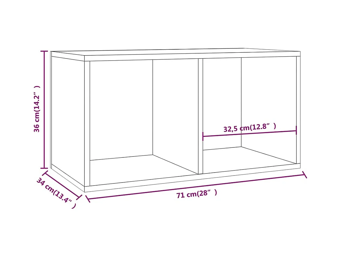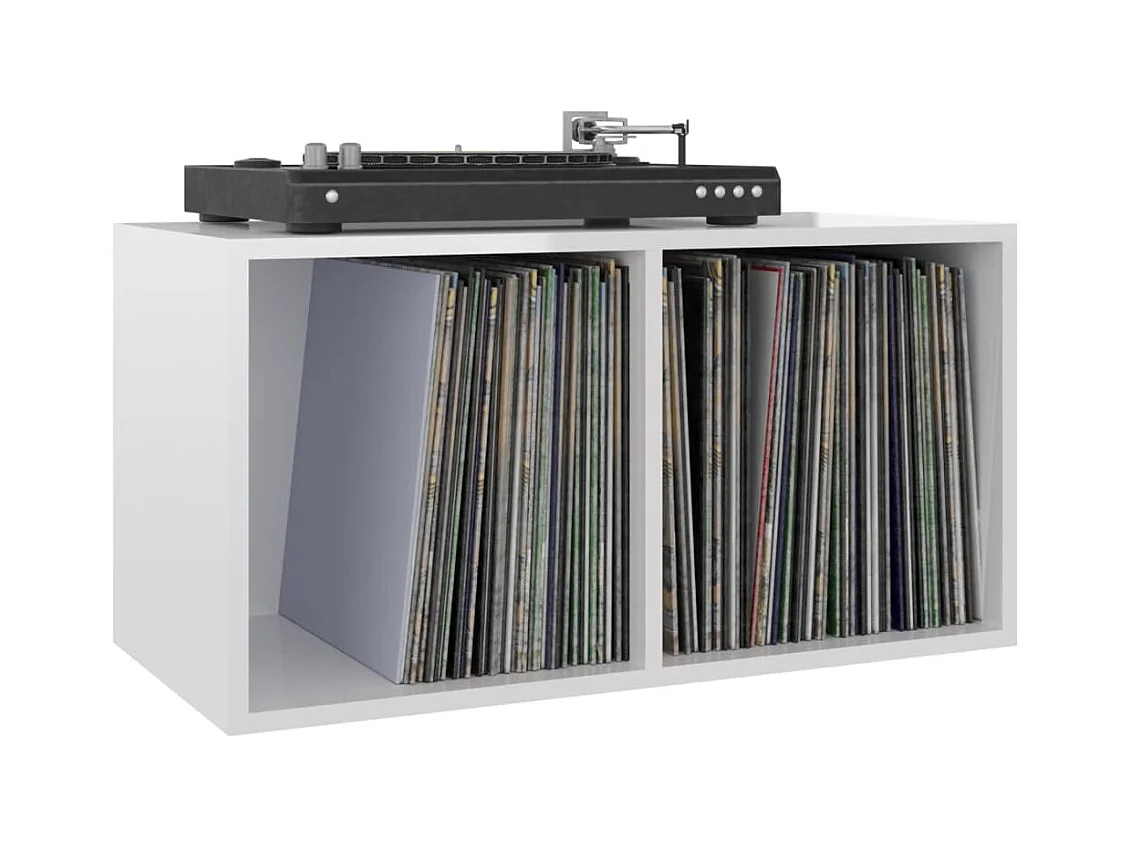 Caixa discos vinil 71x34x36cm derivado madeira branco brilhante