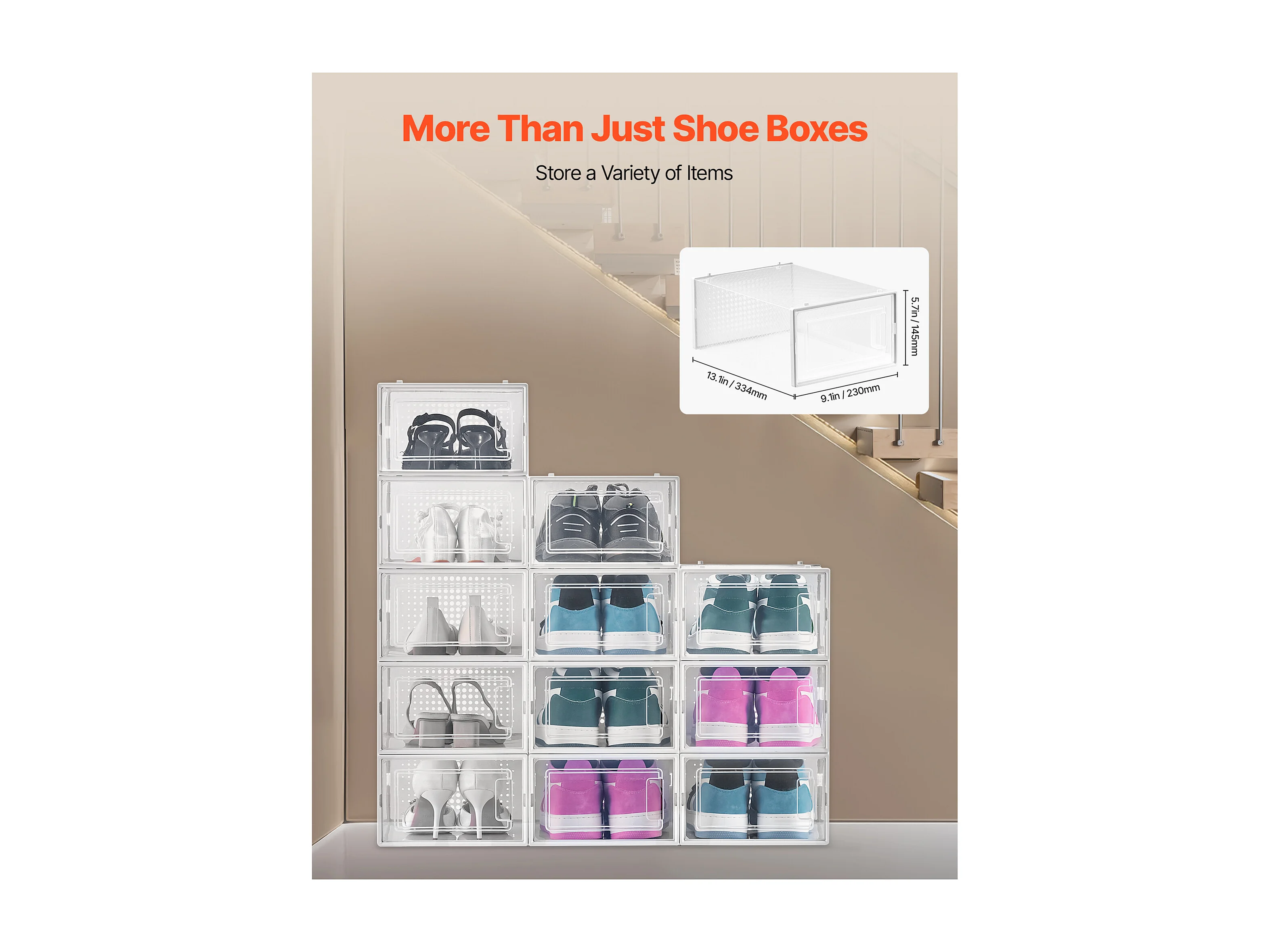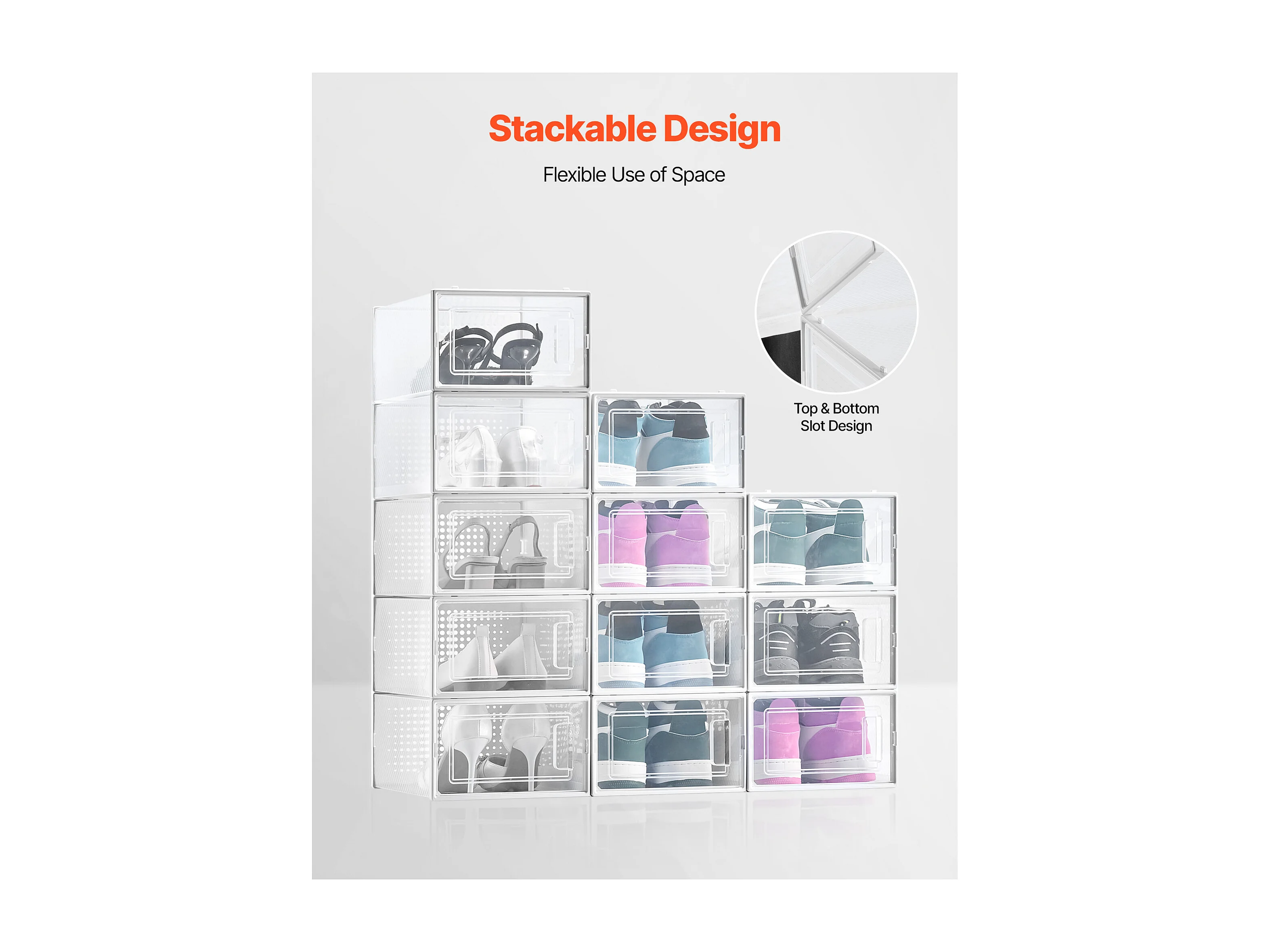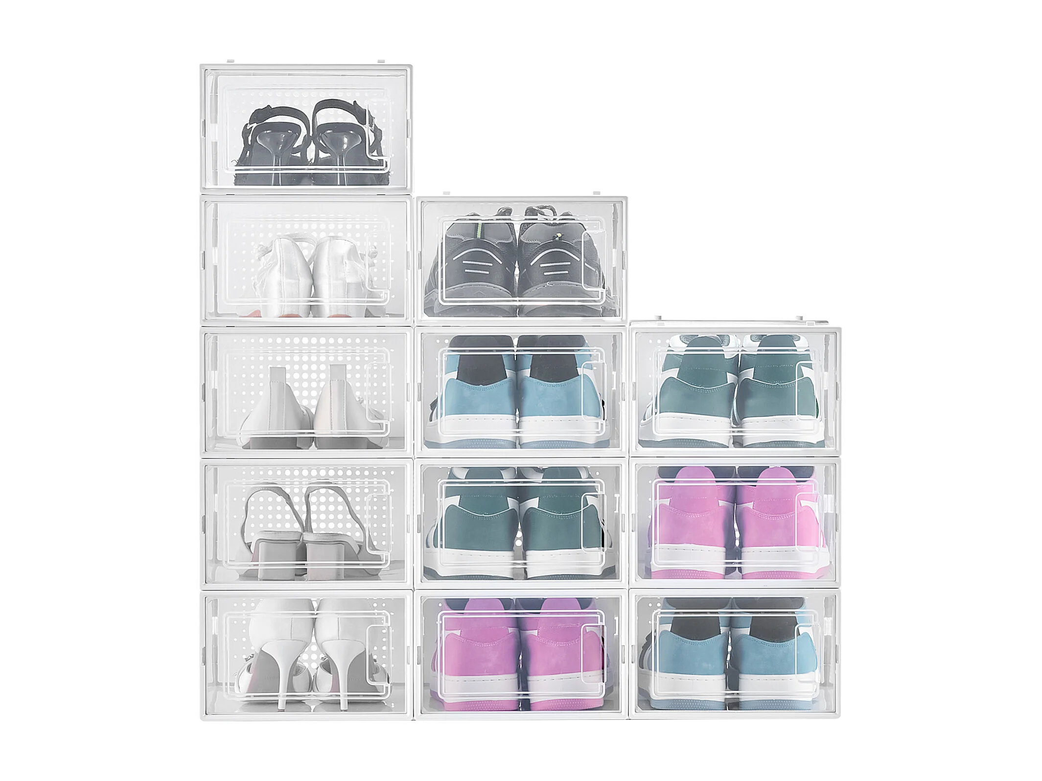 Caixas de Sapatos SucceBuy Modulares Empilháveis - Conjunto de 12, Adequadas até Tamanho US 11, Armazenamento Prático em Plástico para Sapatos
