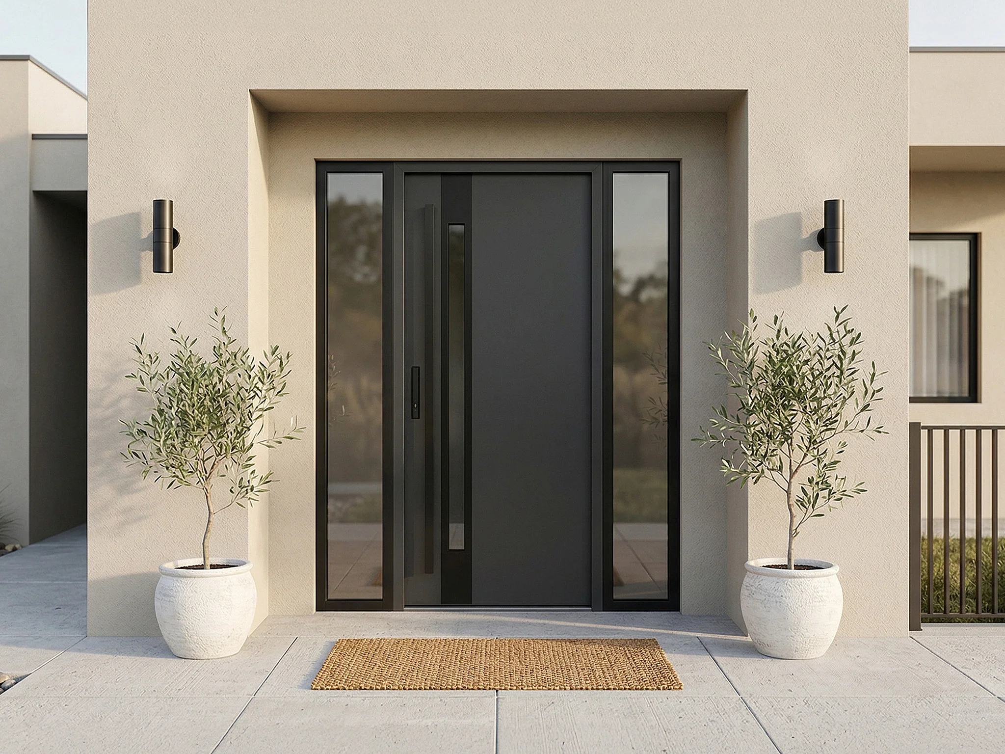 Porta de entrada em aço maciço e inox H207 x C100 cm - espessura 68mm - vidro fumado - antracite e preto - abertura à direita - CALOSA