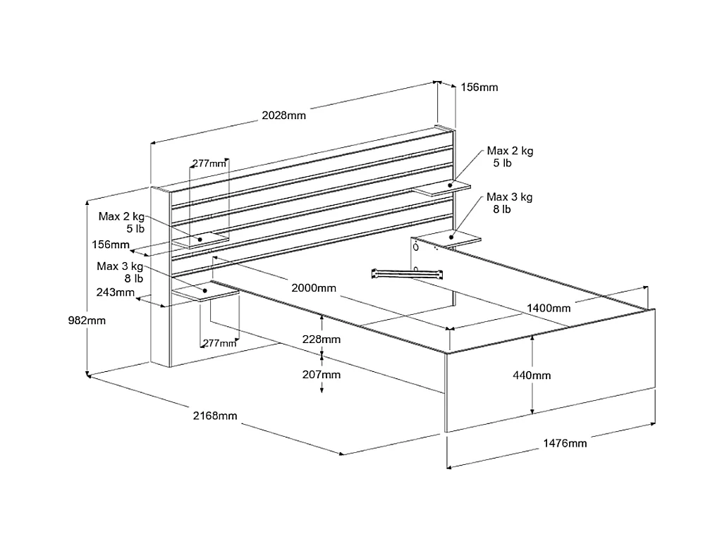 • Possibilidade de escolher o tamanho da cama aquando da montagem