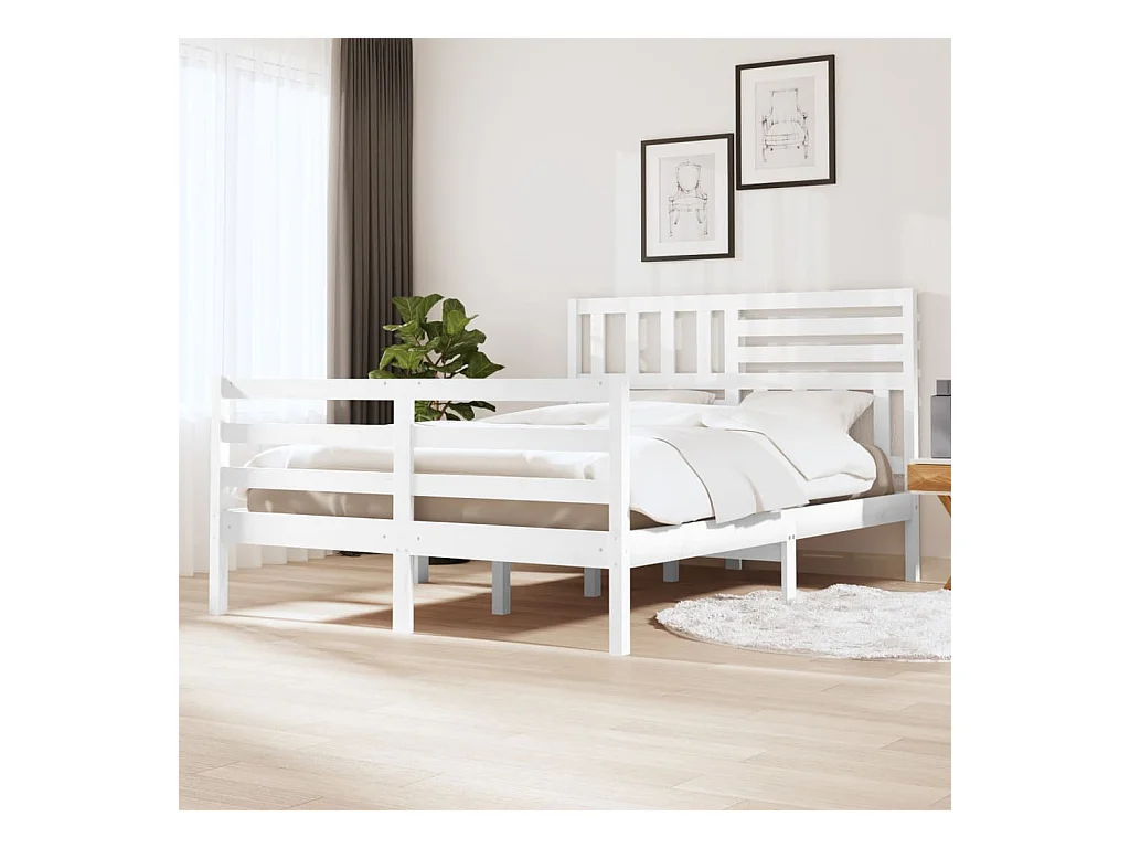 Cama 140x200 cm madeira de pinho maciça branco PT708188