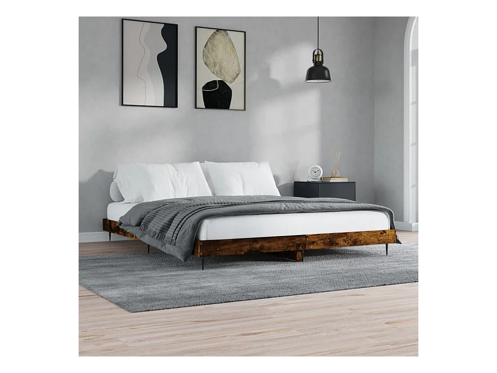 Cama 200x200 cm derivados madeira carvalho fumado PT143259