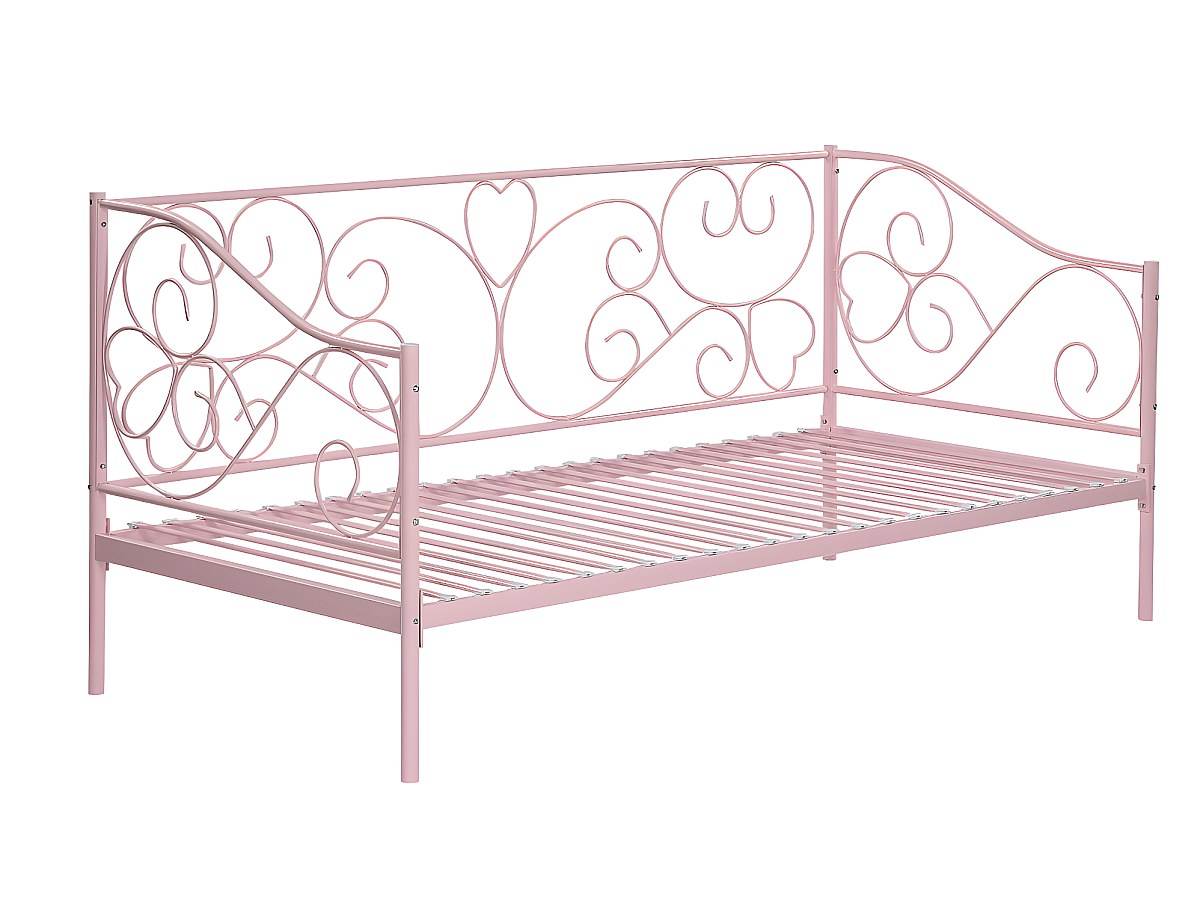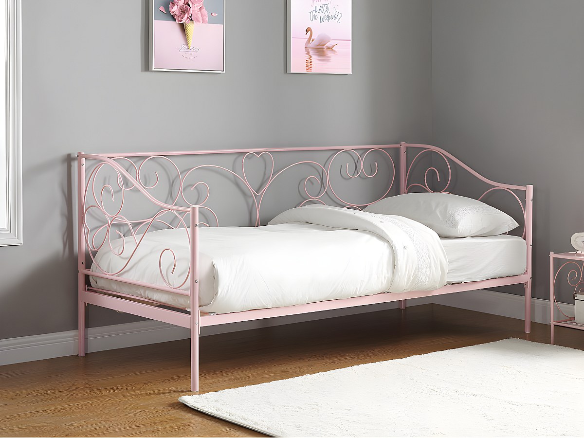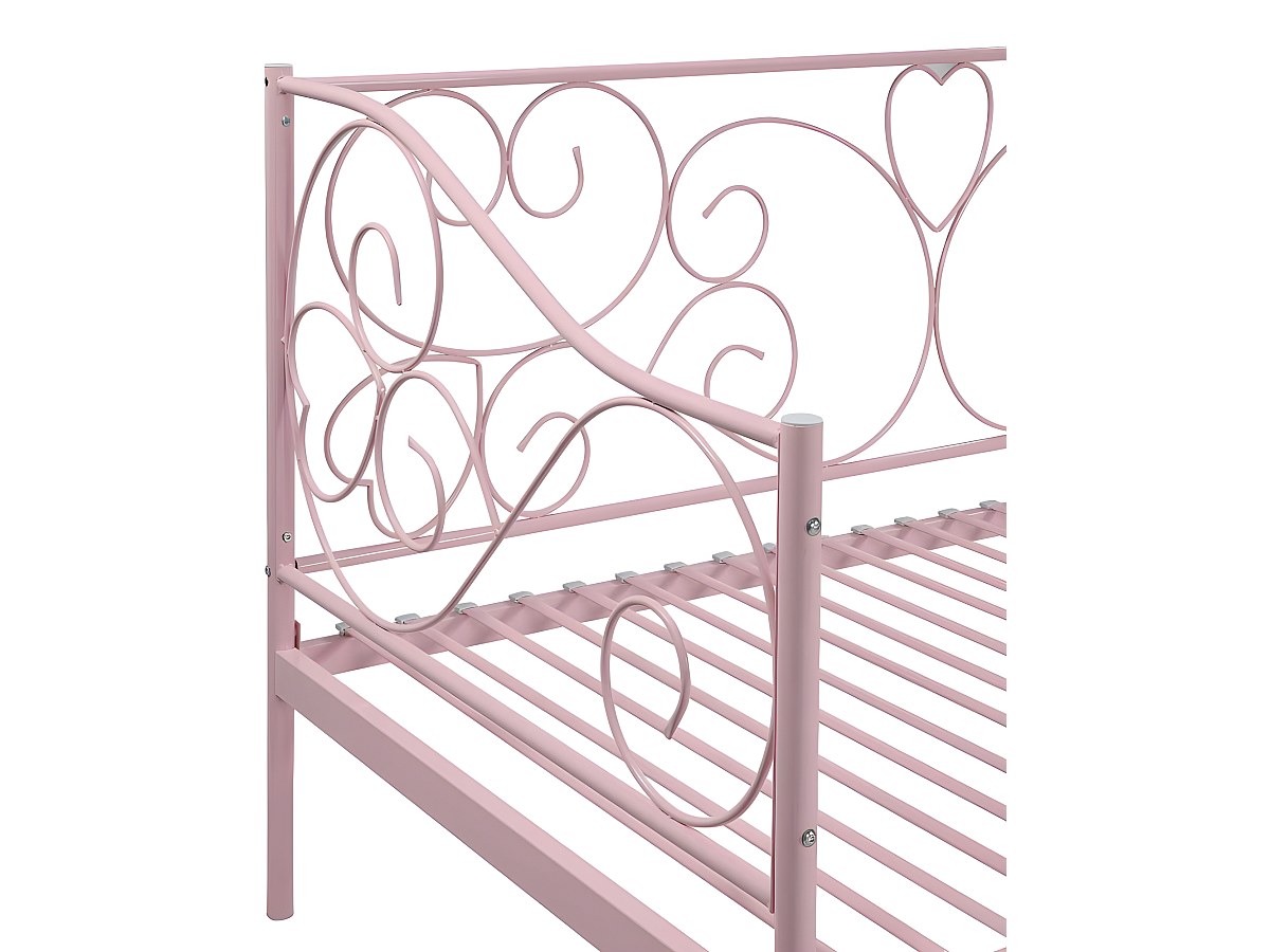 Cama 90x200 cm em metal cor de rosa + Colchão - VIVIAN