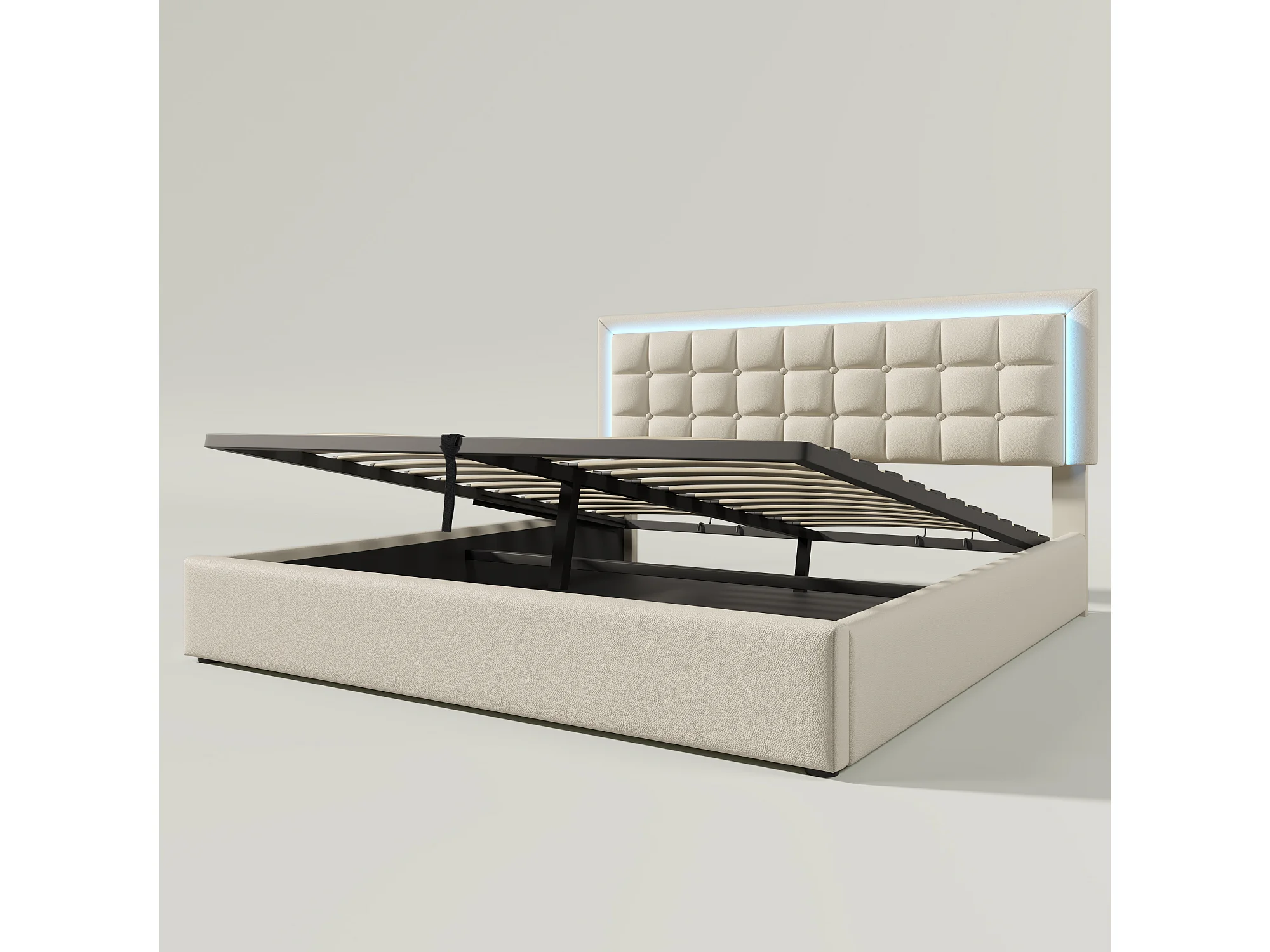 Cama acolchoada para adulto 180 x 1184 cm, sem cabeceira, com faixa LED (monocromática), base com suspensão hidráulica, bege.
