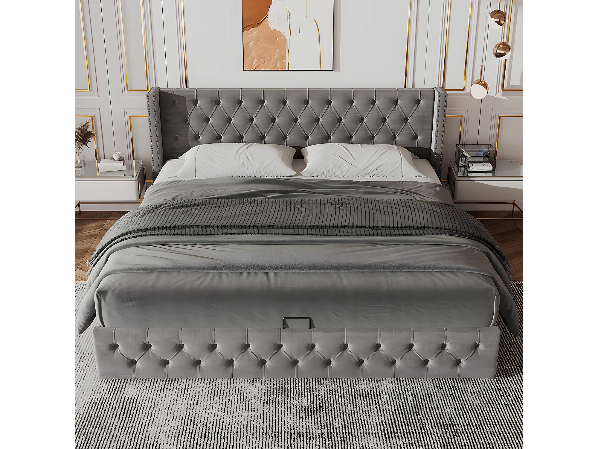 Cama acolchoada para adulto 180 x 1296 cm, sem cabeceira, com faixa LED (monocromática), base com suspensão hidráulica, bege.