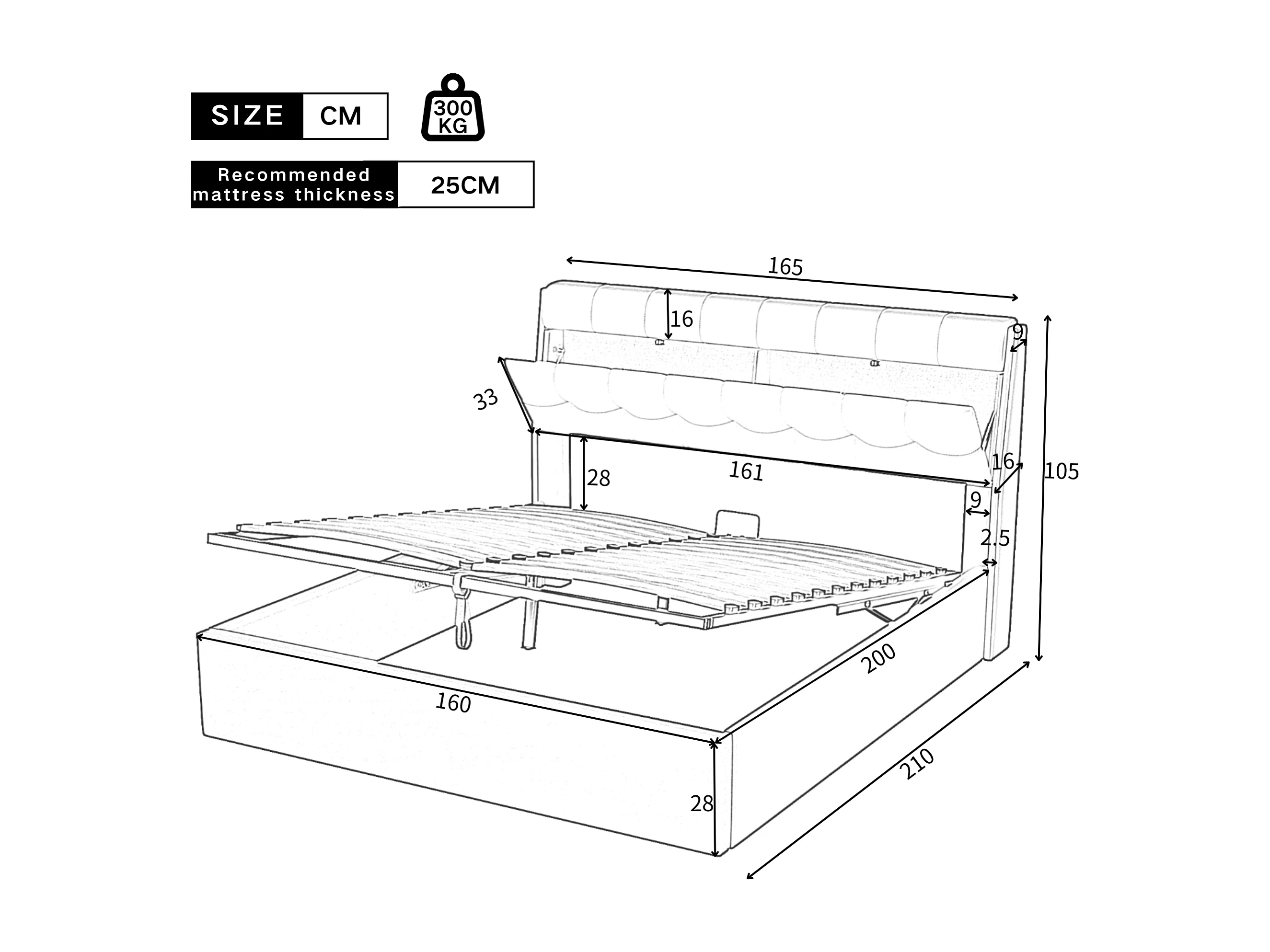Cama acolchoada para adulto 180 x 1326 cm, sem cabeceira, com faixa LED (monocromática), base com suspensão hidráulica, bege.