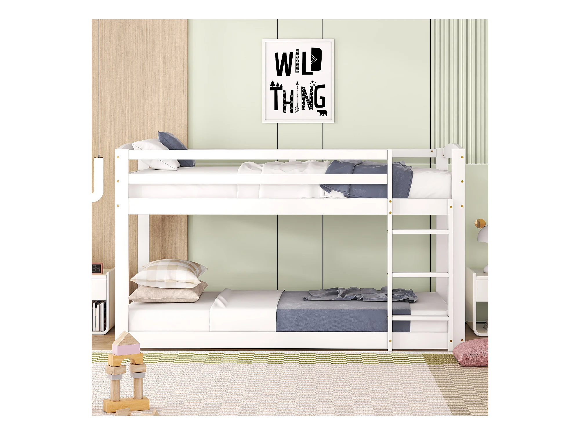 Beliches de madeira - 90 x 200 cm - Com escada - Escorrega e janela - Proteção contra quedas - Branco