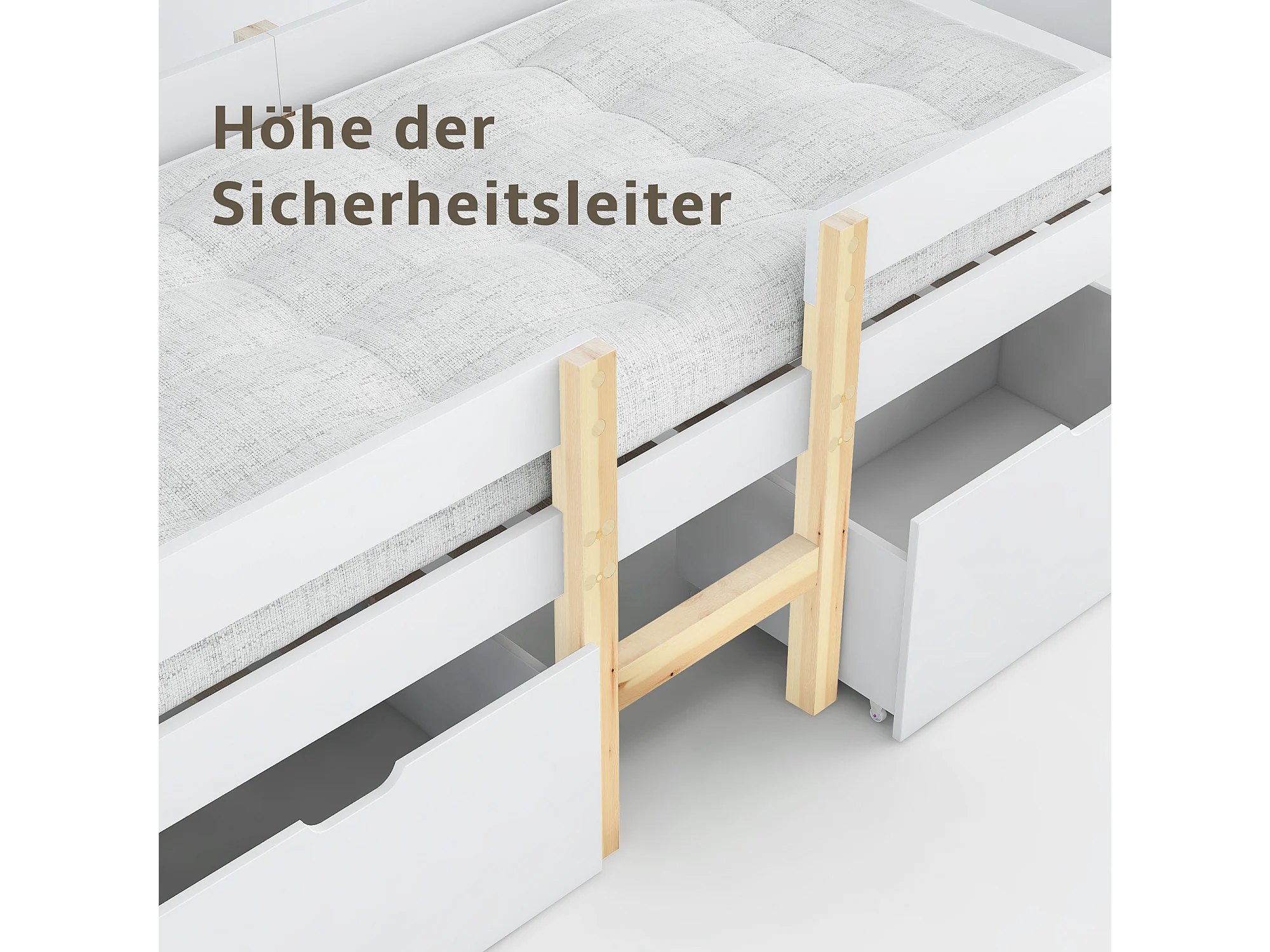 Cama infantil 90x200 cm - com gavetas e armazenamento sob a cama - com ripas de suporte - MDF - Branco (sem colchão)