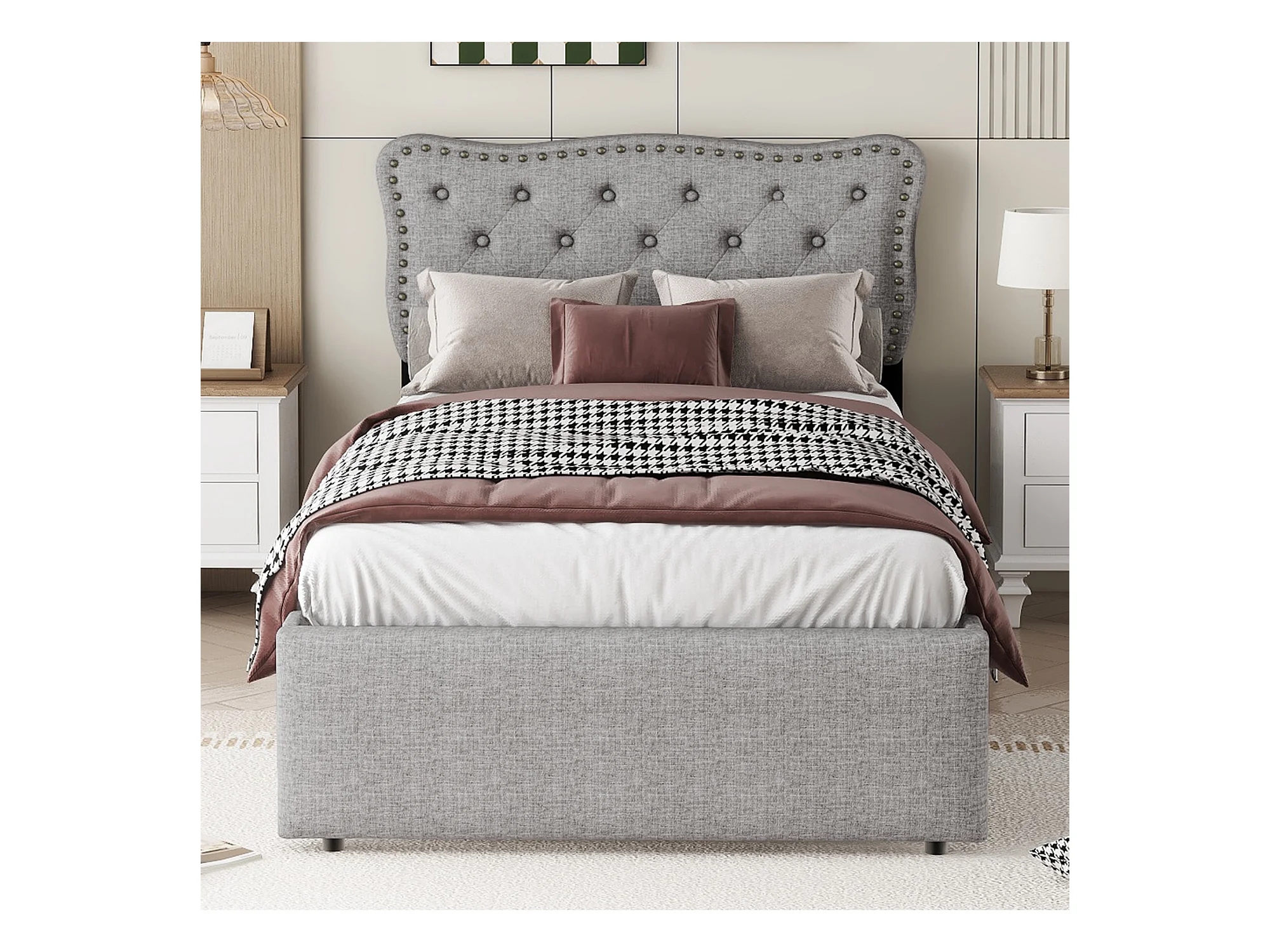 Cama hidráulica arrumação 90x200cm tecido cinza-claro