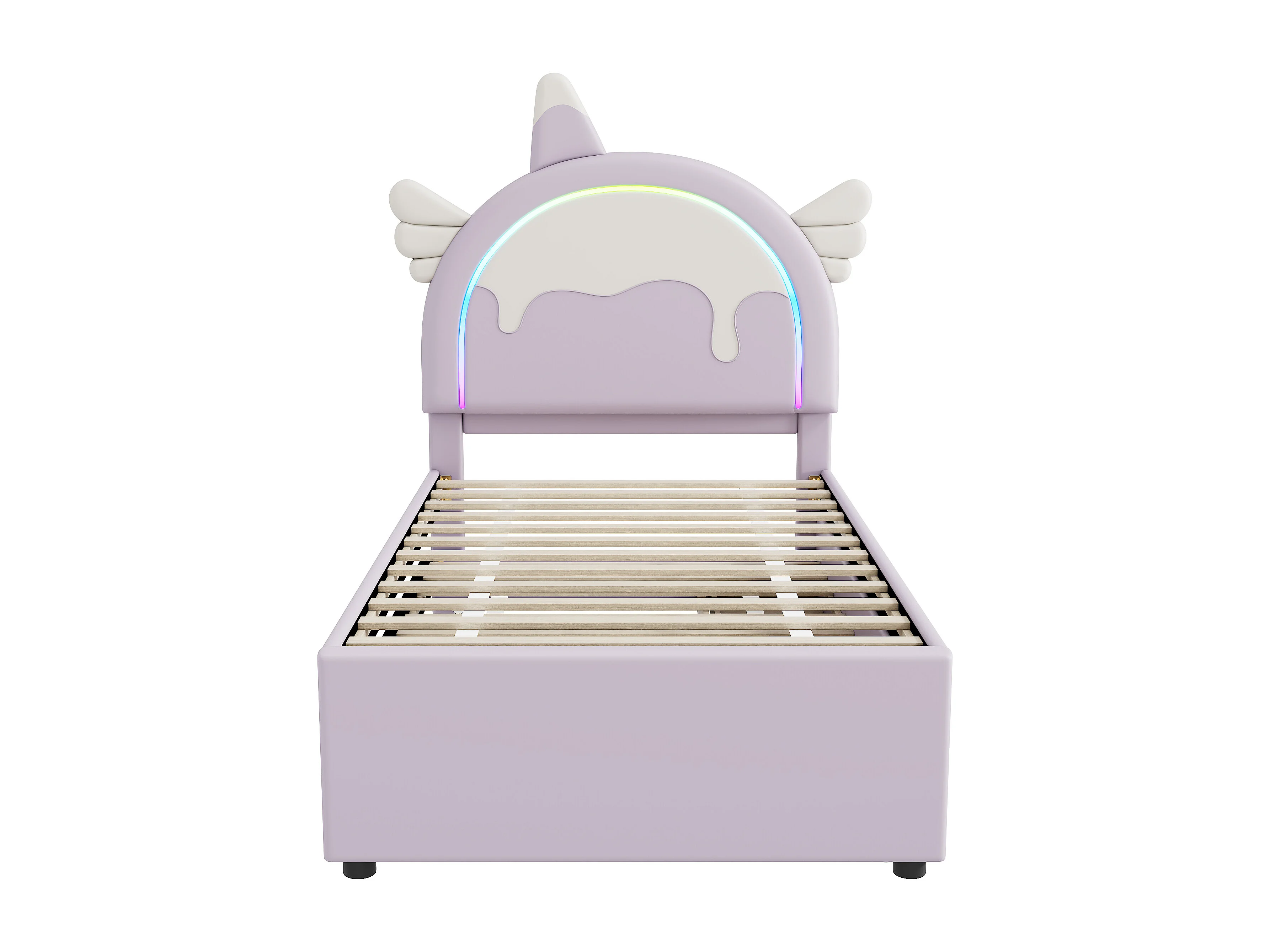 Roxo 90 * 200 cm Cama infantil com desenhos animados, material PU, com cama dobrável retrátil, estilo UNICÓRNIO