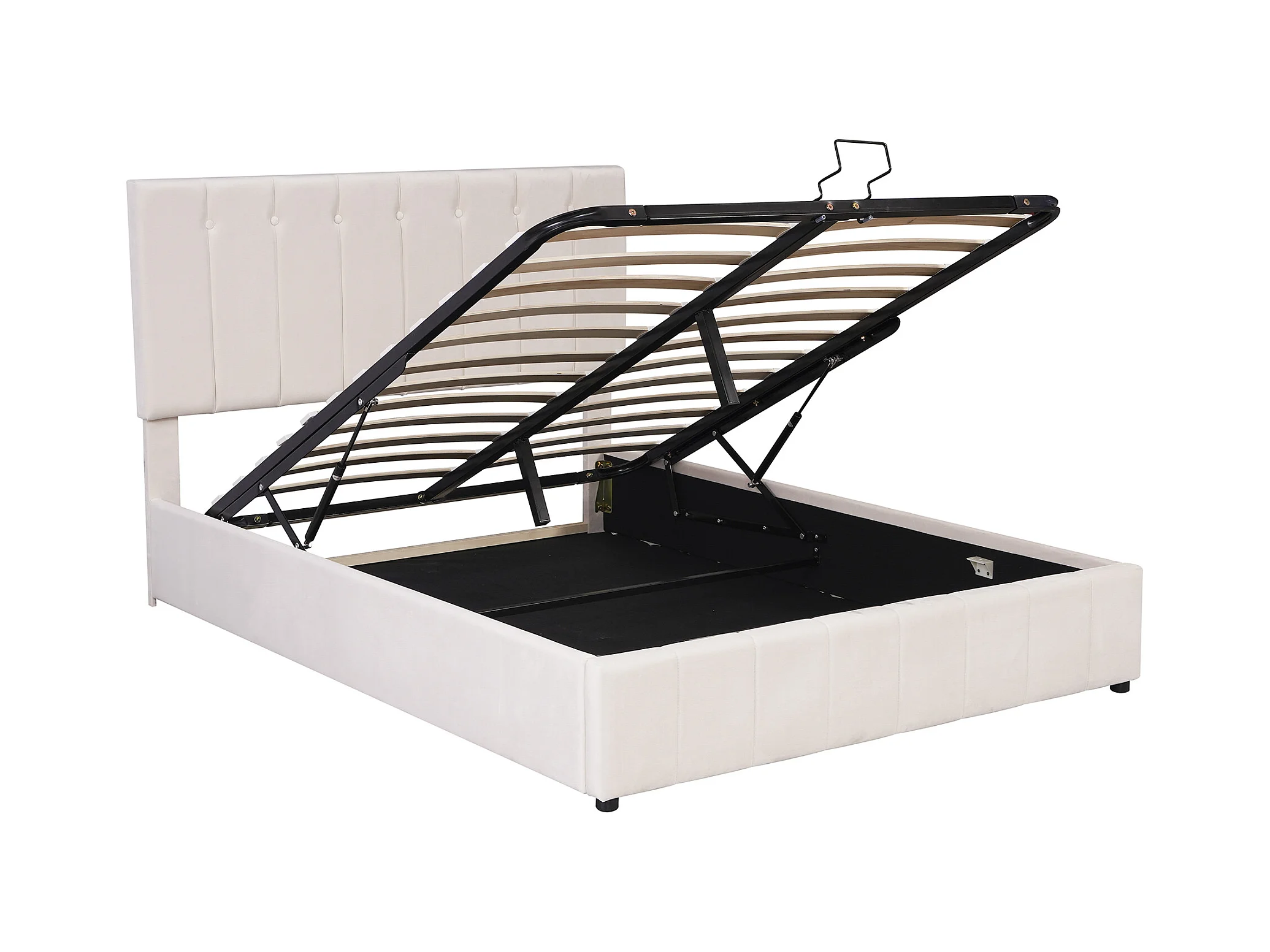 Cama acolchoada para adulto 180 x 970 cm, sem cabeceira, com faixa LED (monocromática), base com suspensão hidráulica, bege.