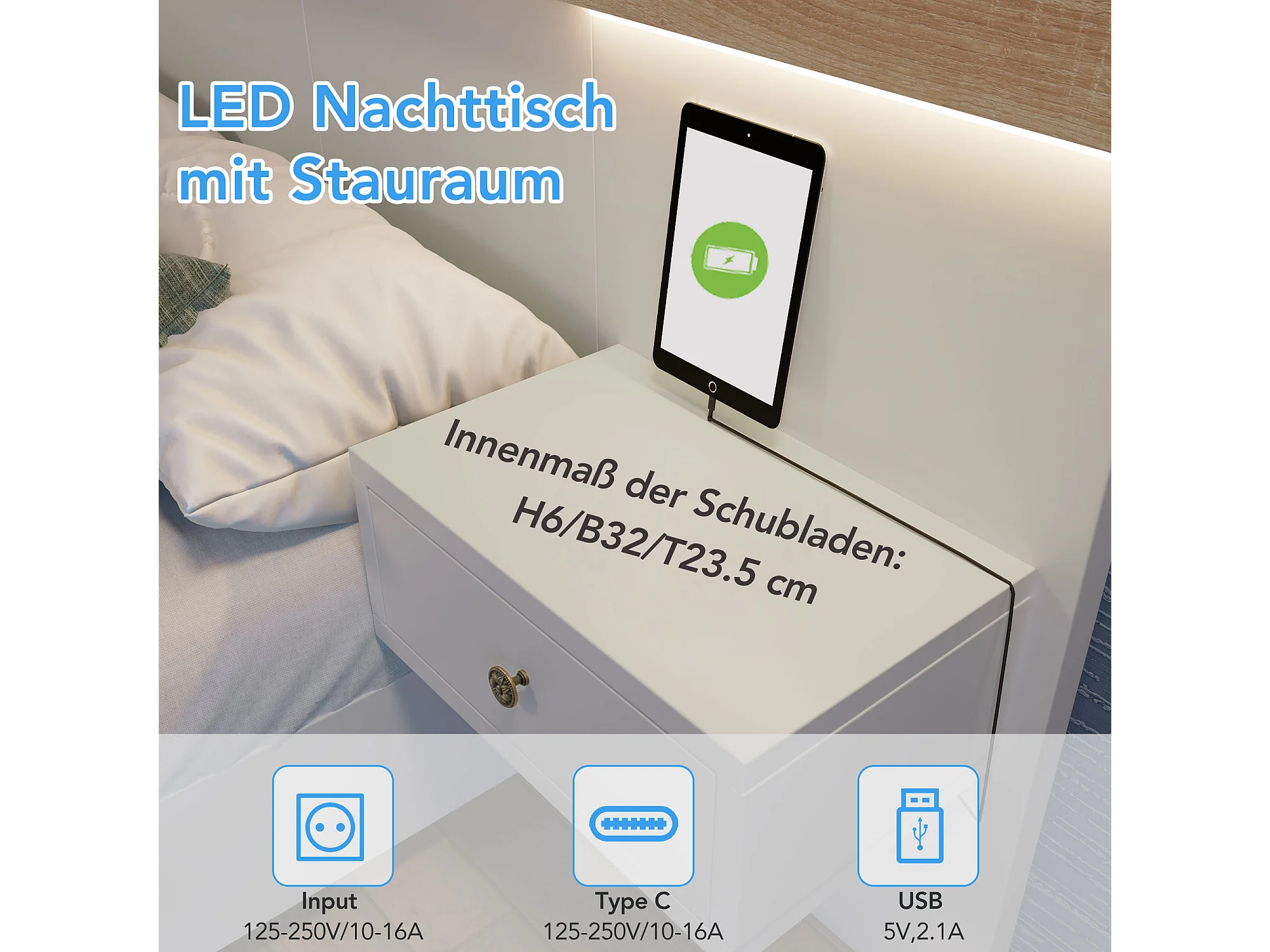 Cama acolchoada para adulto 180 x 940 cm, sem cabeceira, com faixa LED (monocromática), base com suspensão hidráulica, bege.