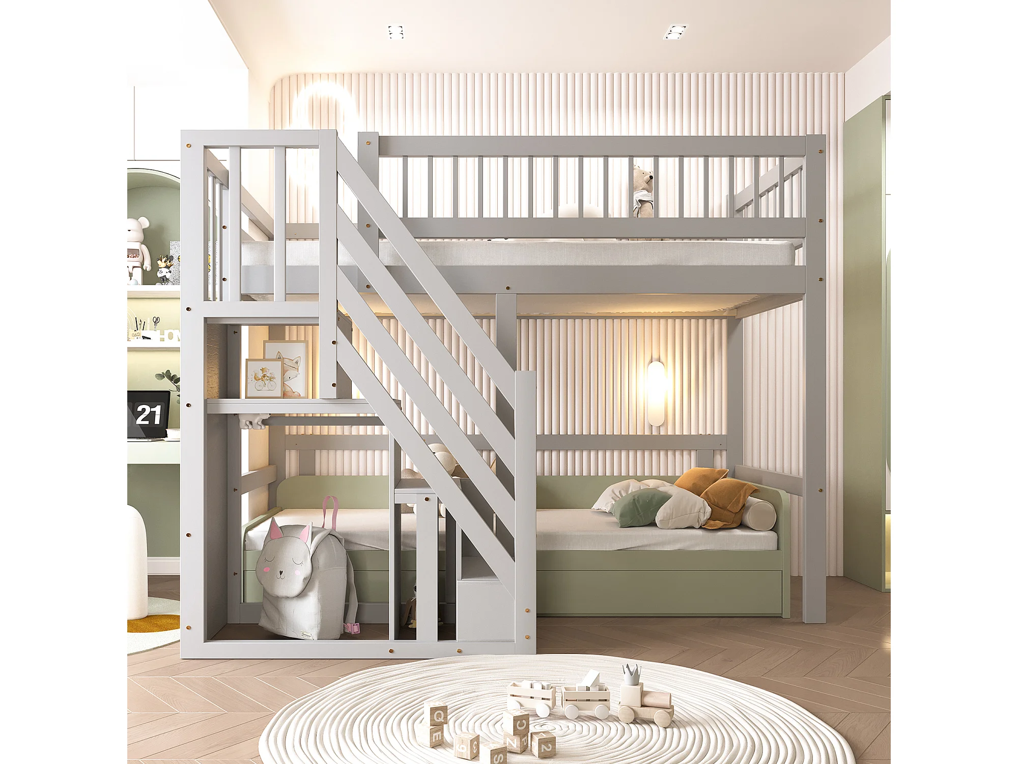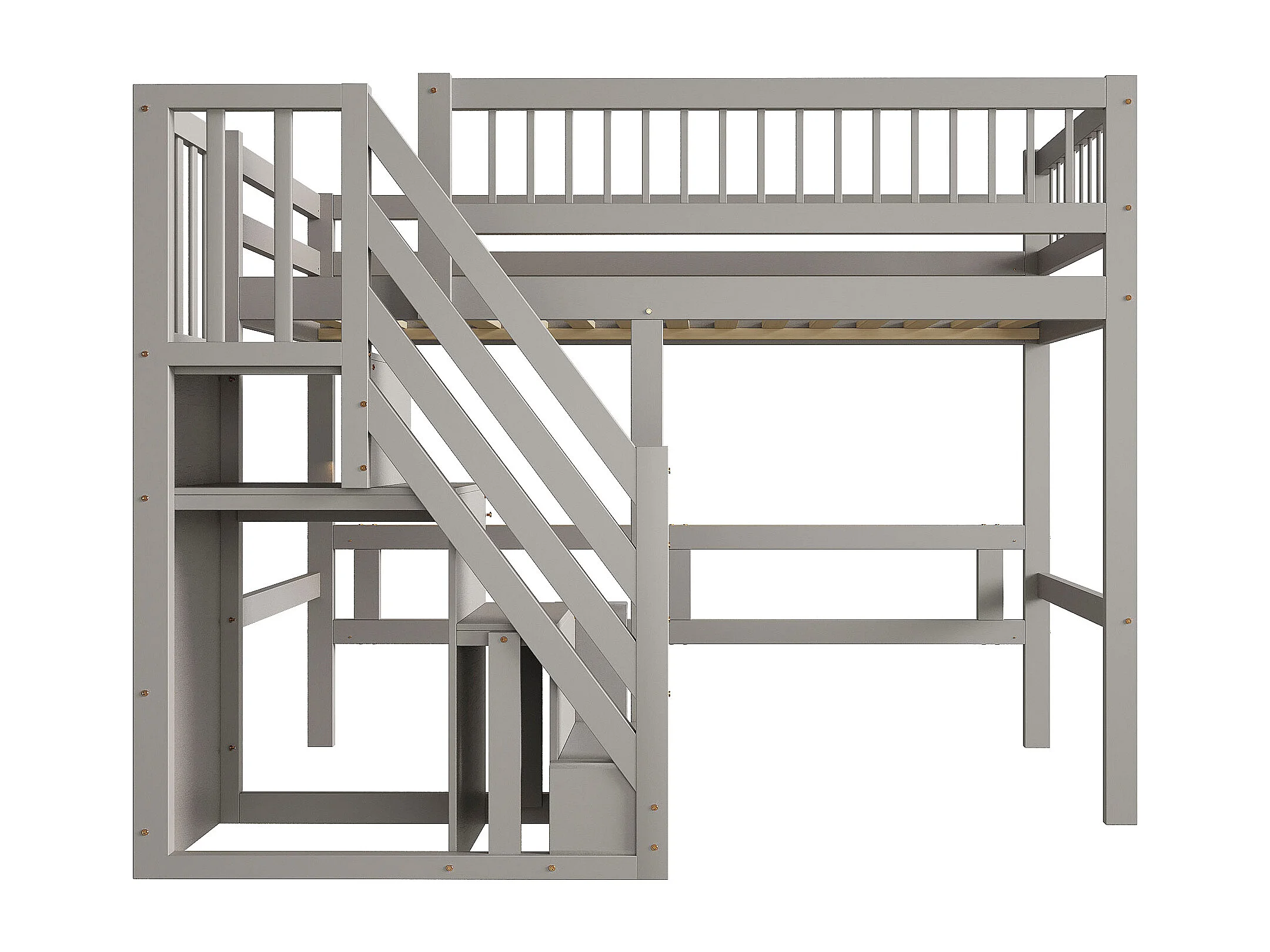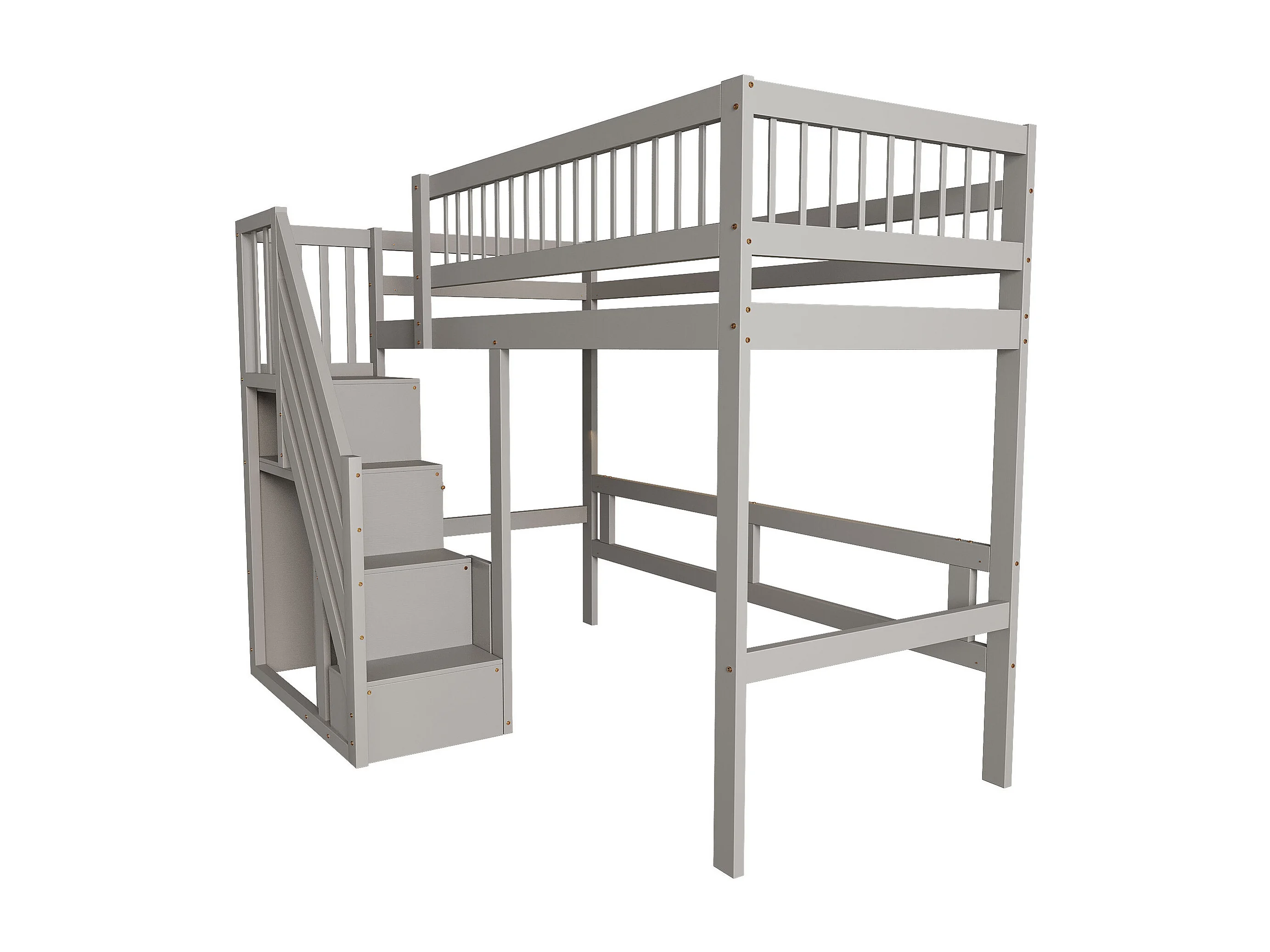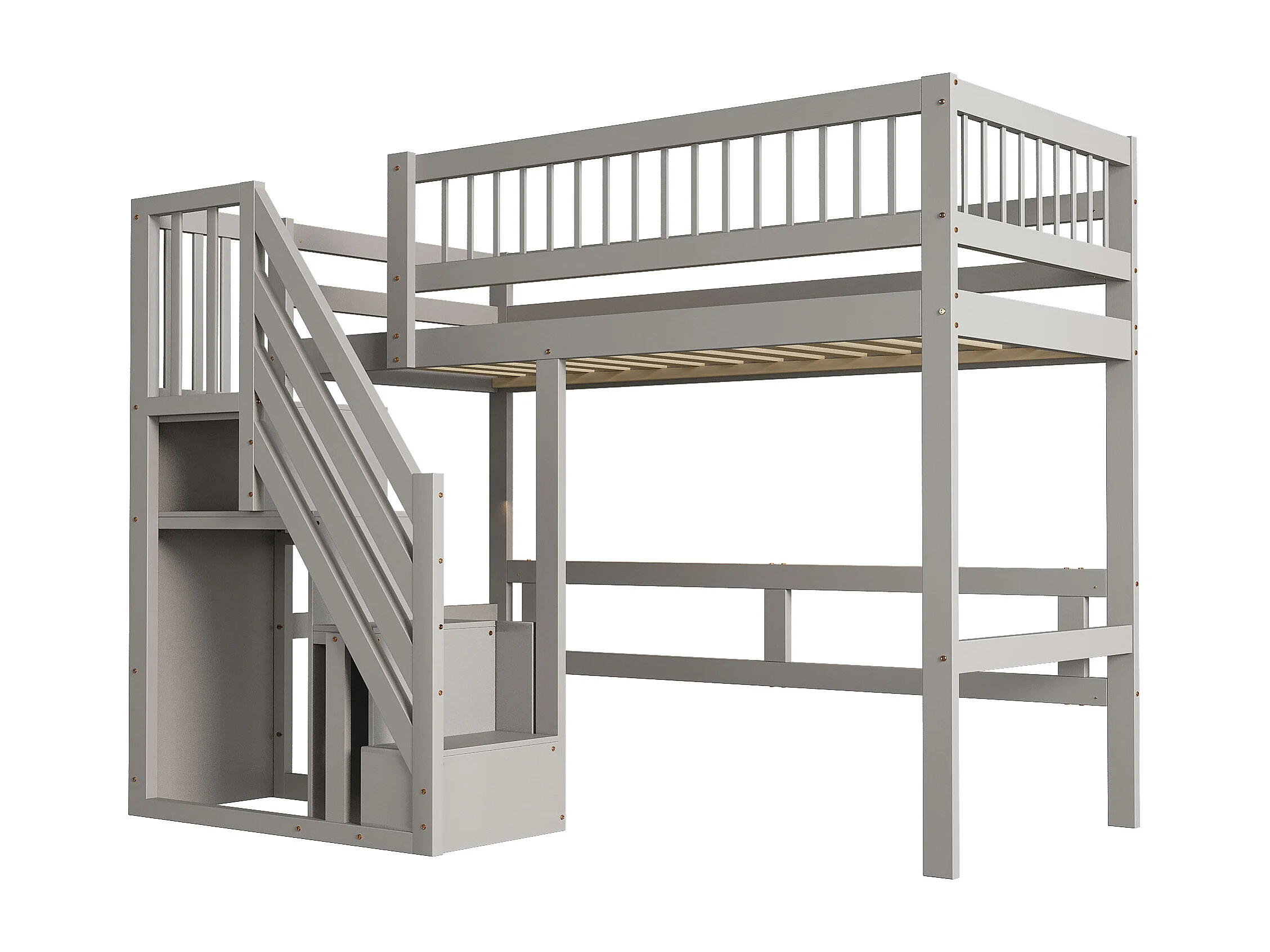 Cama alta 90x200 cm - Cama de criança com arrumação e grades de proteção - cinzento - colchão não incluído