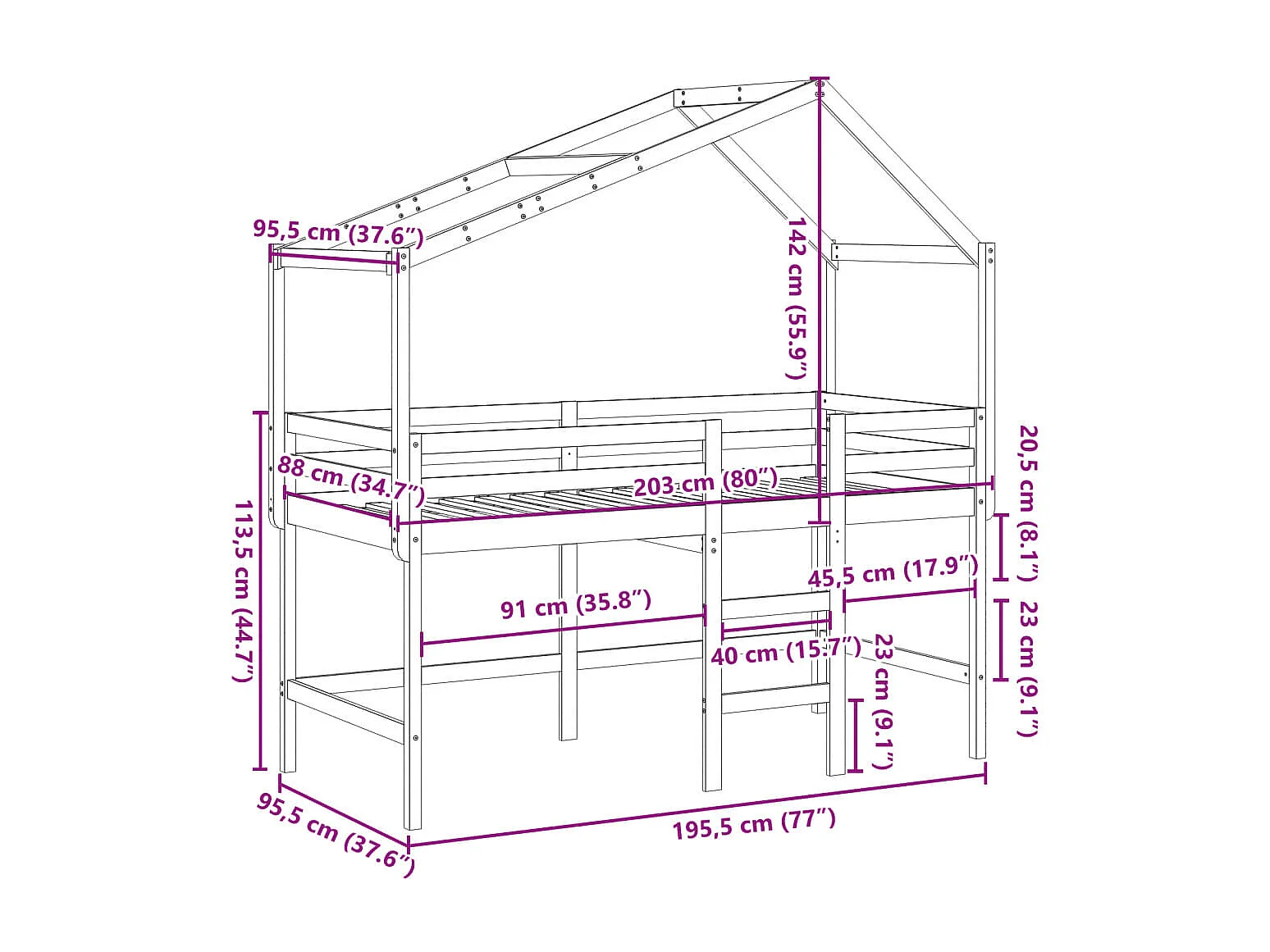 Beliche com telhado 90x190 cm madeira de pinho maciça branco PT490487