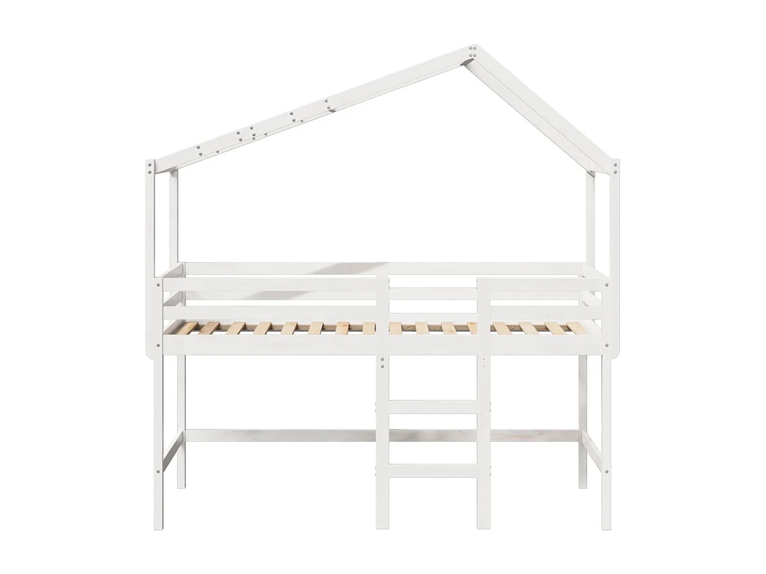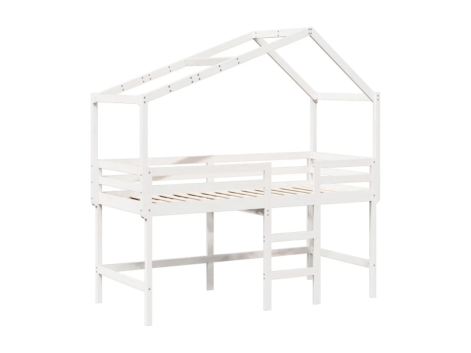 Cama alta com escada e telhado 80x200 cm pinho maciço branco