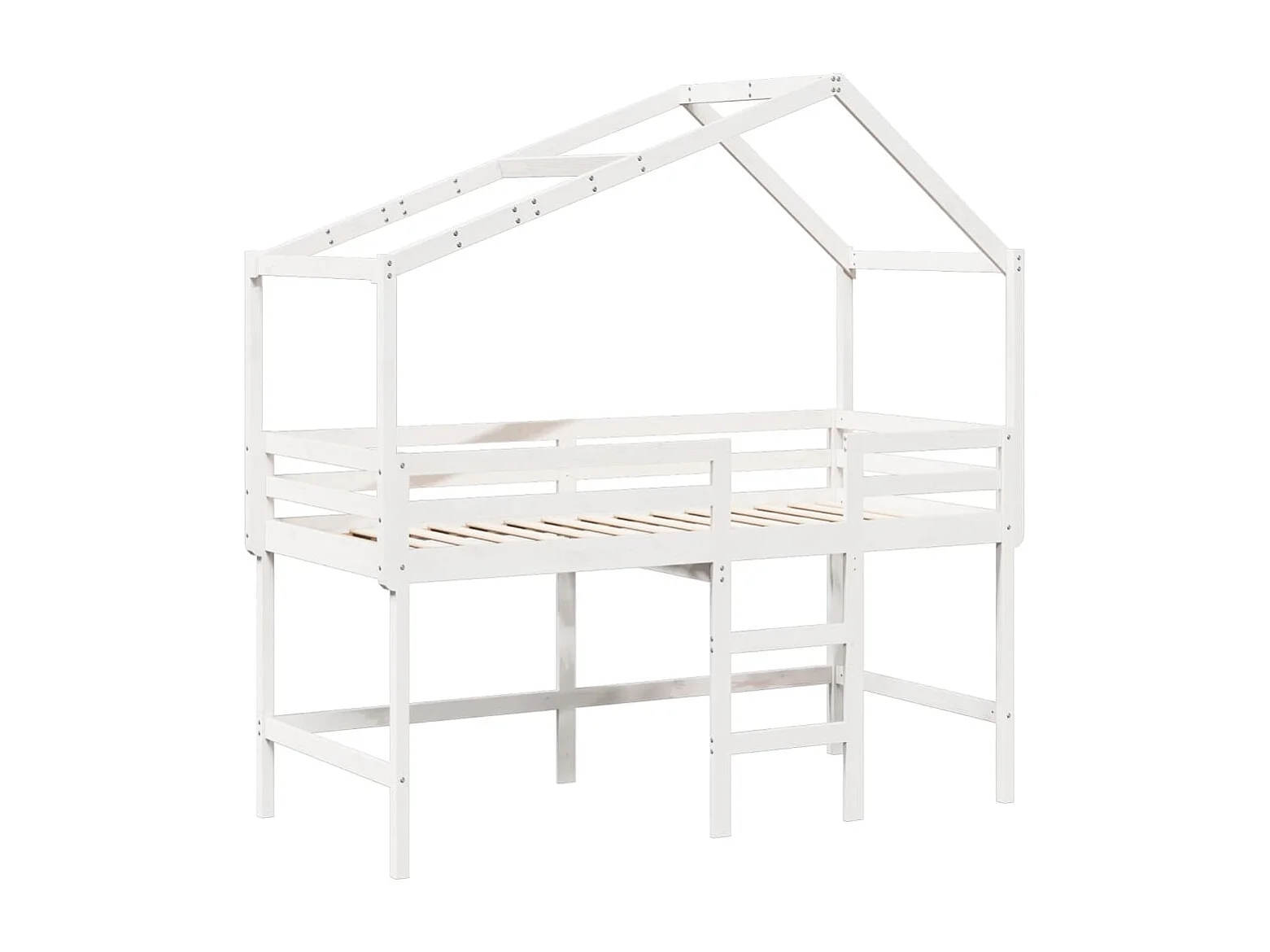 Cama alta com escada e telhado 90x190 cm pinho maciço branco