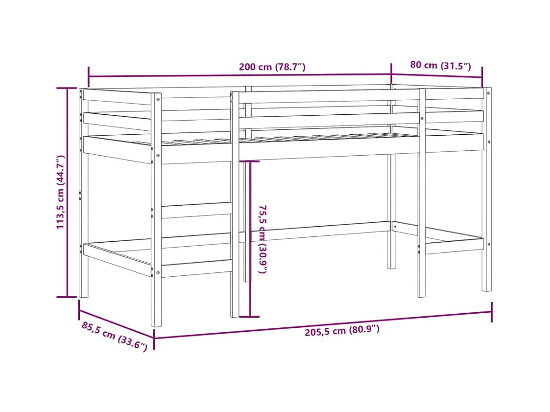 Cama infantil 80x200 cm pinho maciço preto PT131045