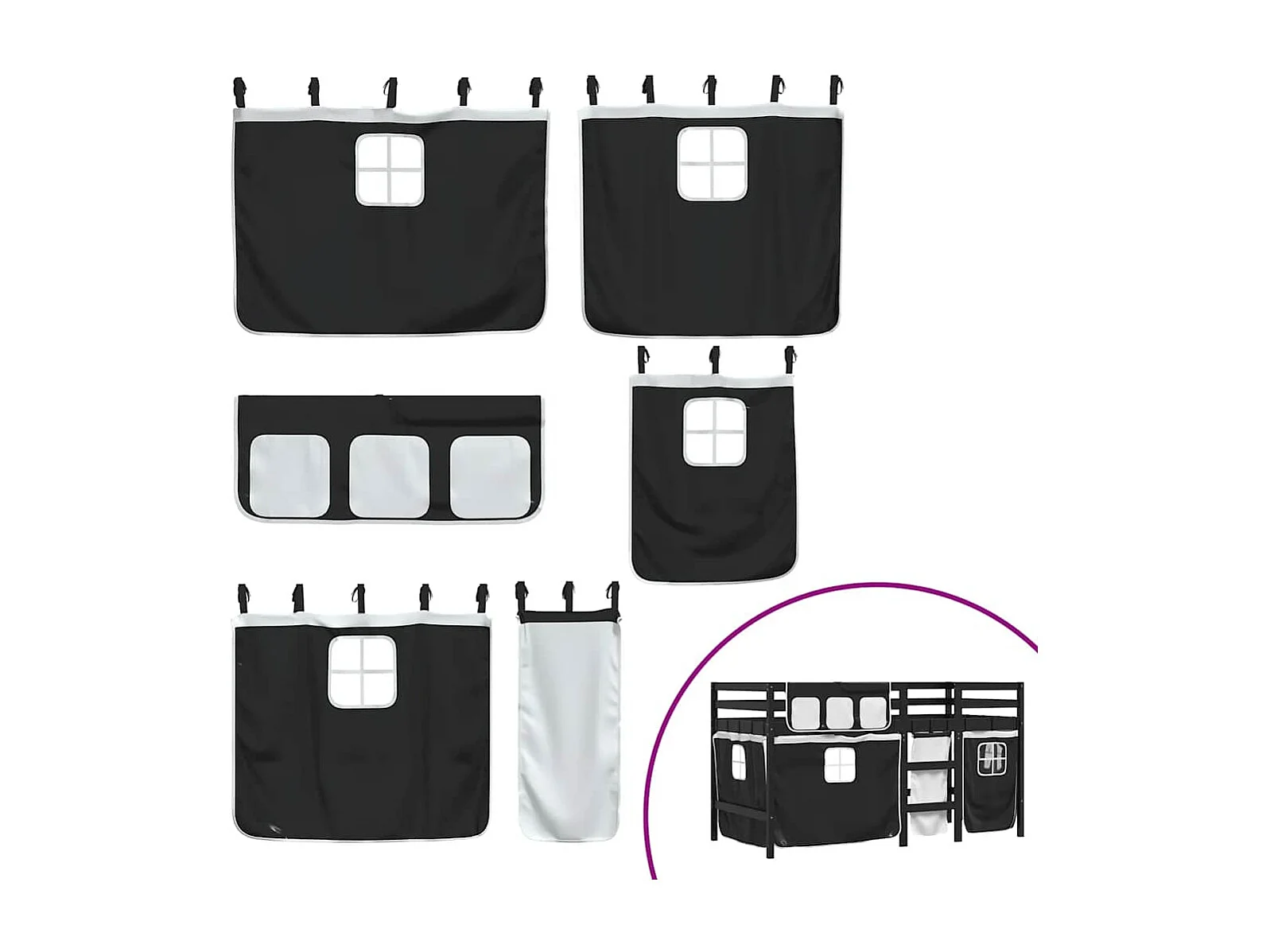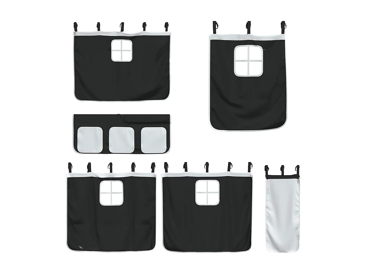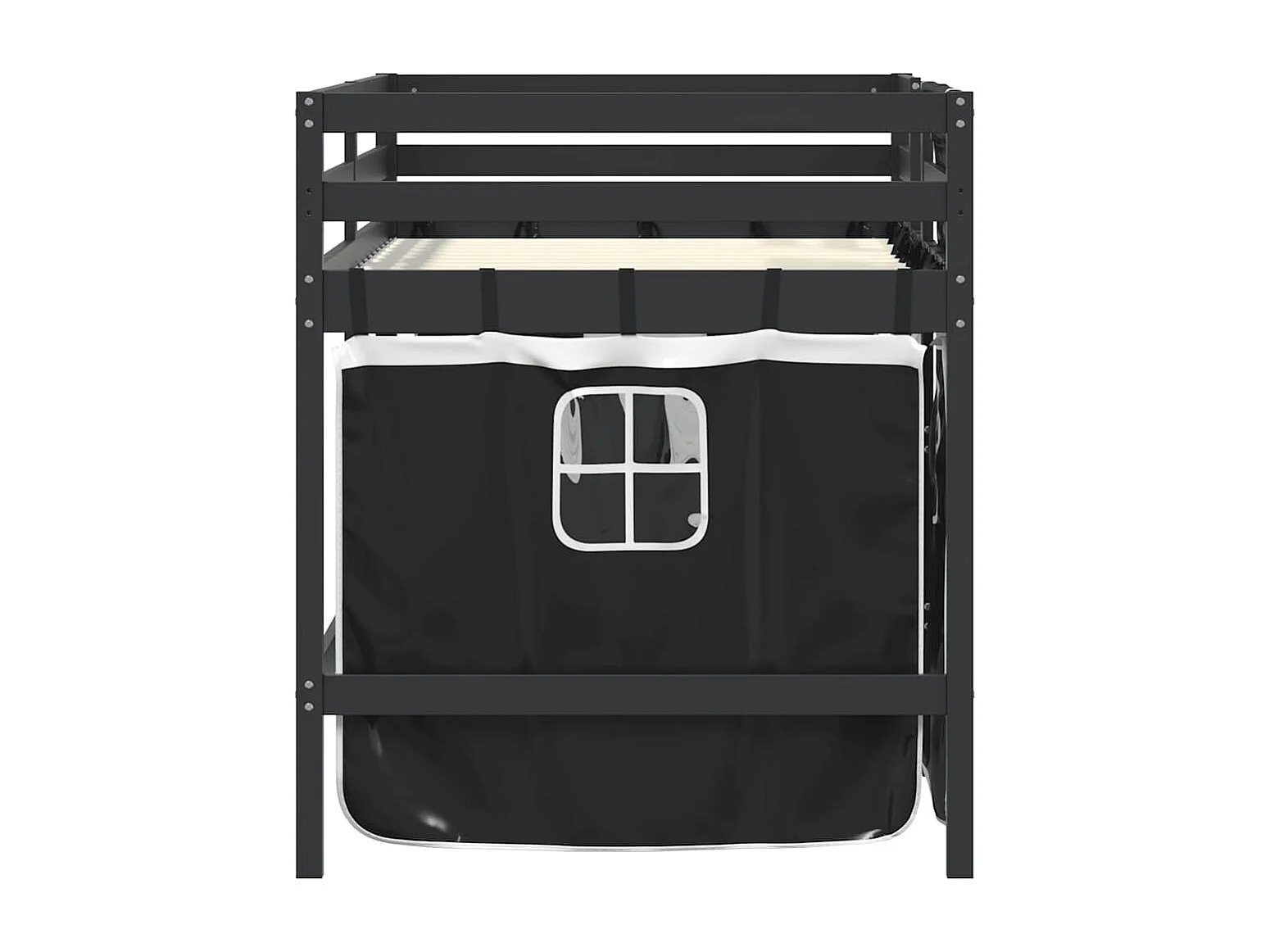 Cama alta criança c/ cortina 80x200cm pinho maciço branco/preto