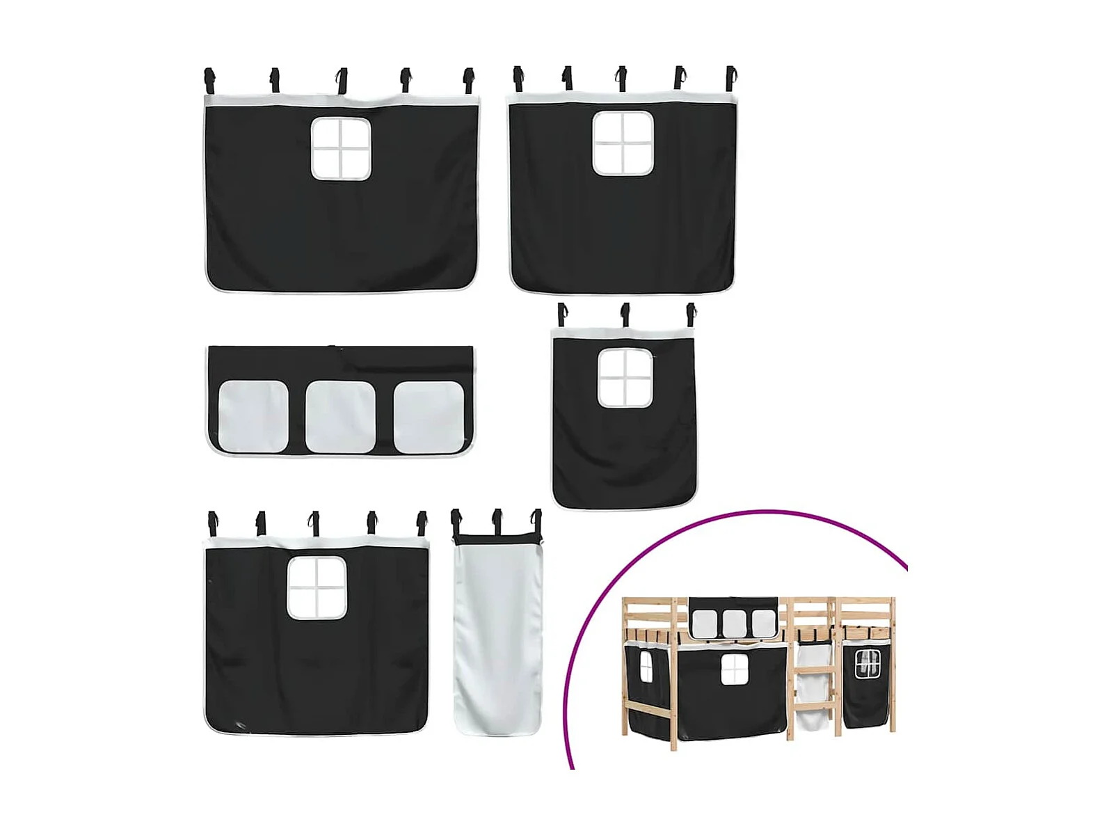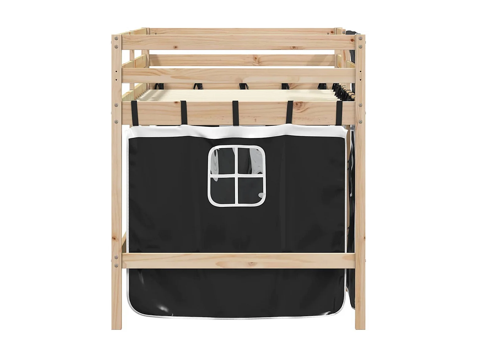 Cama alta criança c/ cortina 80x200cm pinho maciço branco/preto
