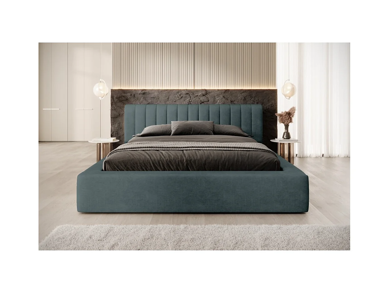 Cama baú CERVIN – Veludo suave Noite Esmeralda – 160x200 cm – Estrado elevatório – Design elegante