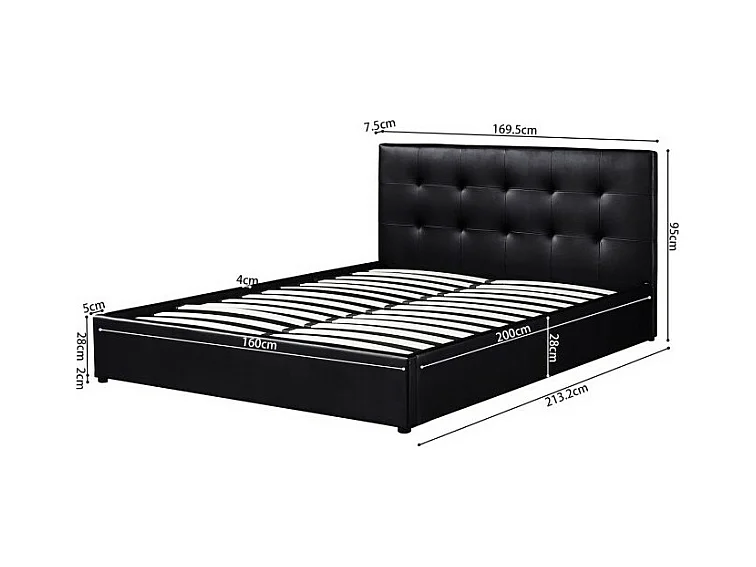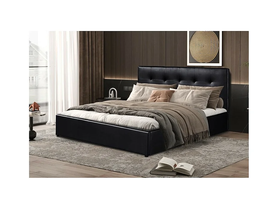 Estrutura de cama em PU preto com arrumação e LED integrados 160x200 cm NOVA IORQUE