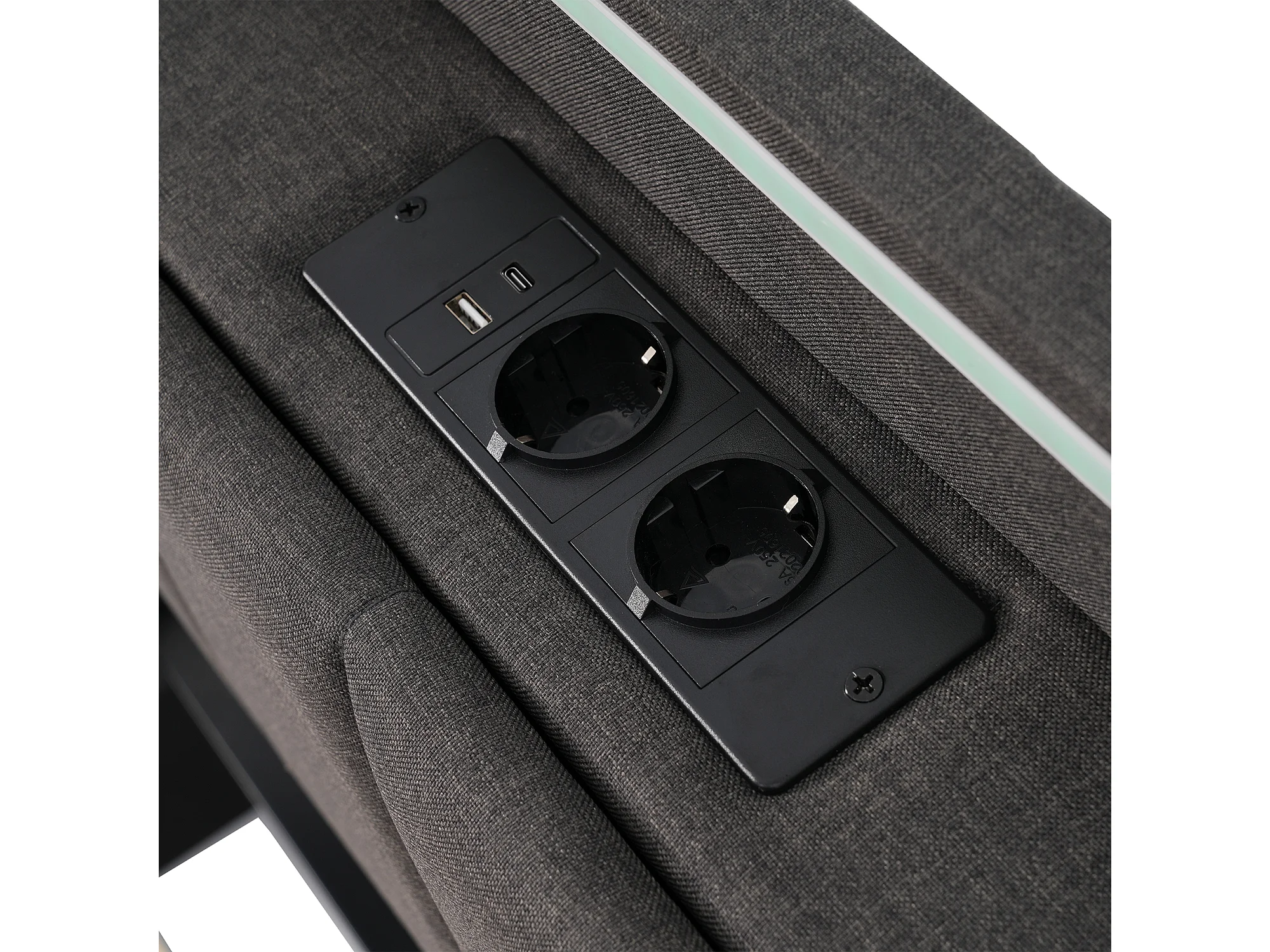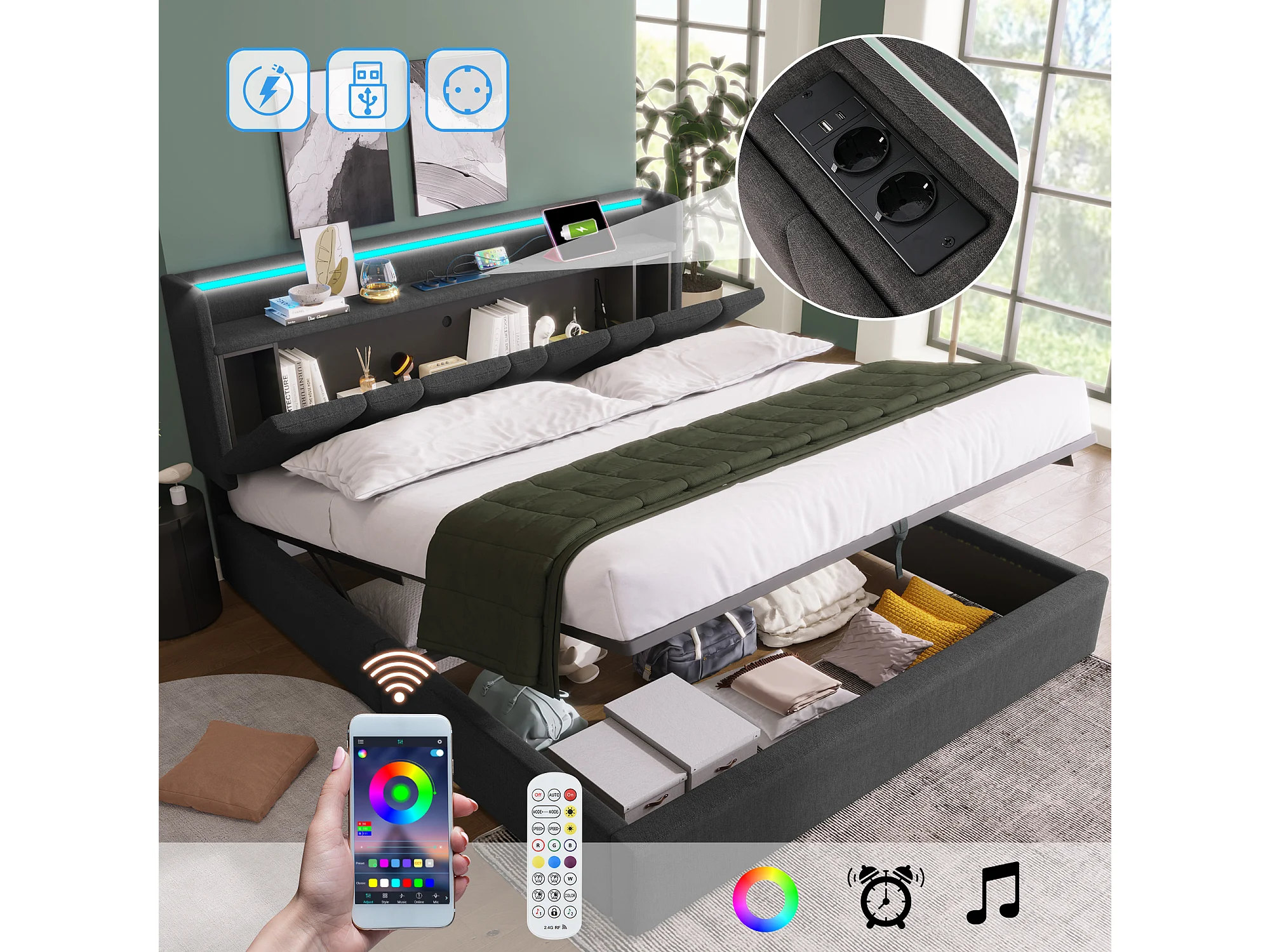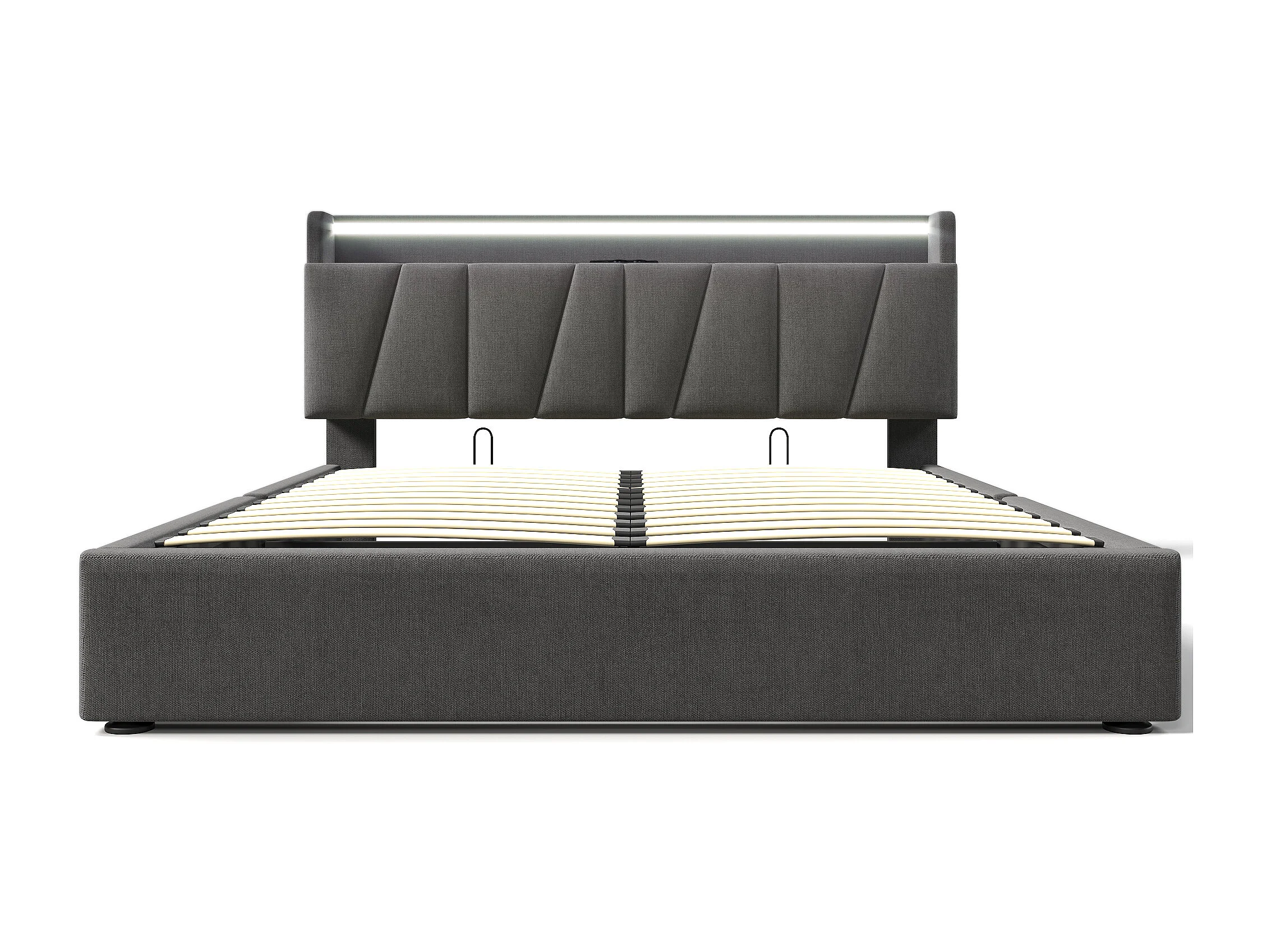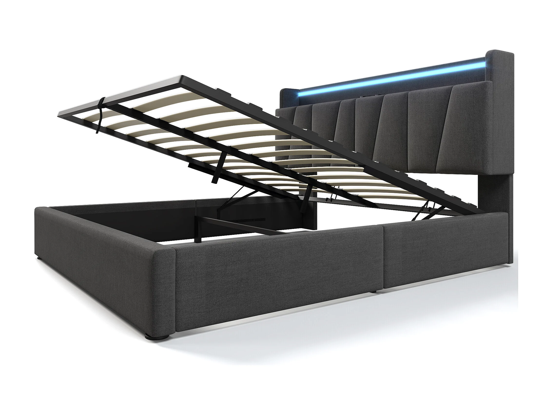 Cama baú estofada 140x190cm - con LED e portas de carregamento - tecido de linho - con somier de ripas - Cinza​ (sem colchão)