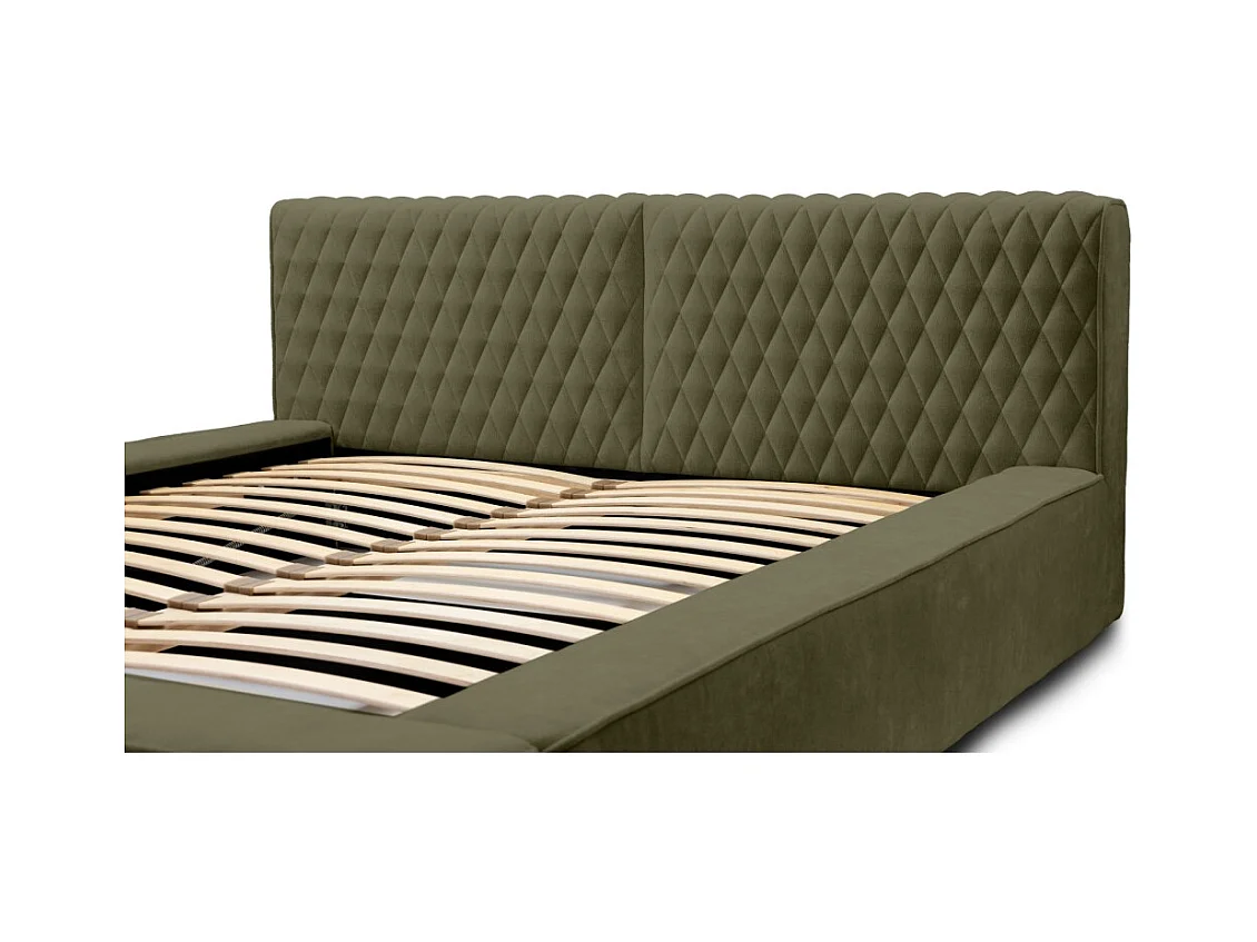 Lit coffre DENALI – Olive bouclé – 180x200 cm – Tecido veludo macio – Estrado elevatório – Armazenamento integrado