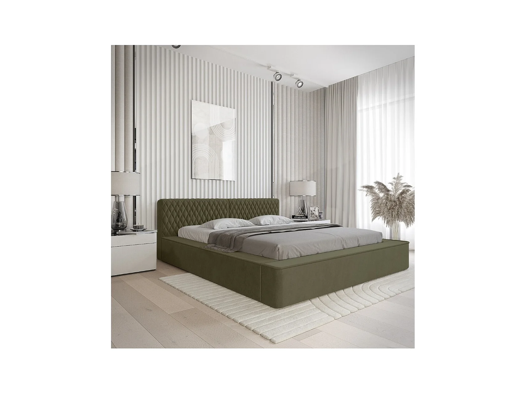 Cama baú CERVIN – Veludo macio Sálvia Noturna – 180x200 cm – Estrado elevatório – Design elegante
