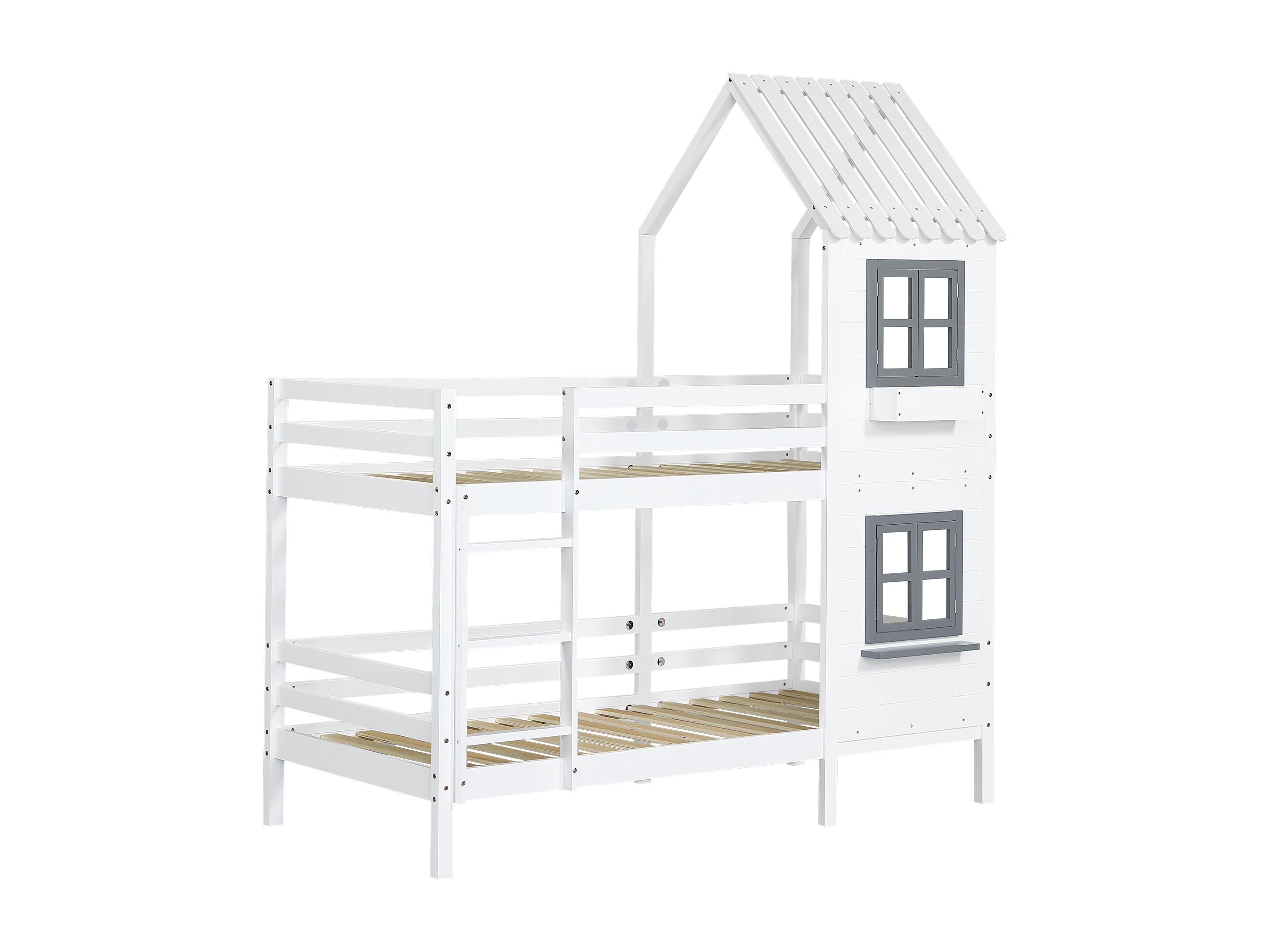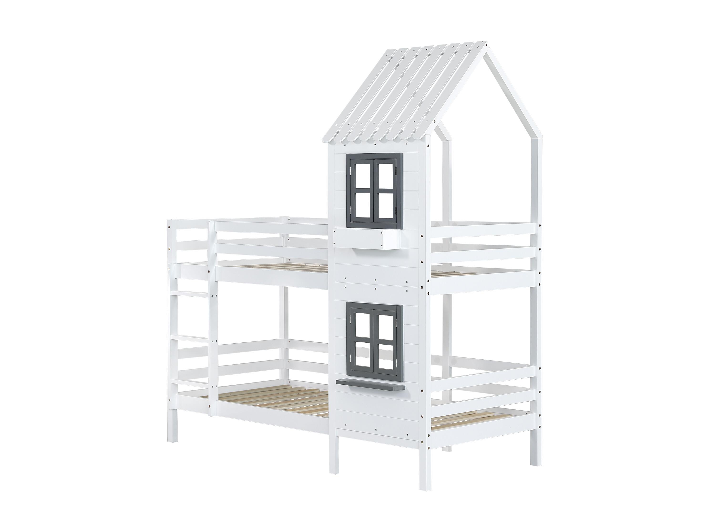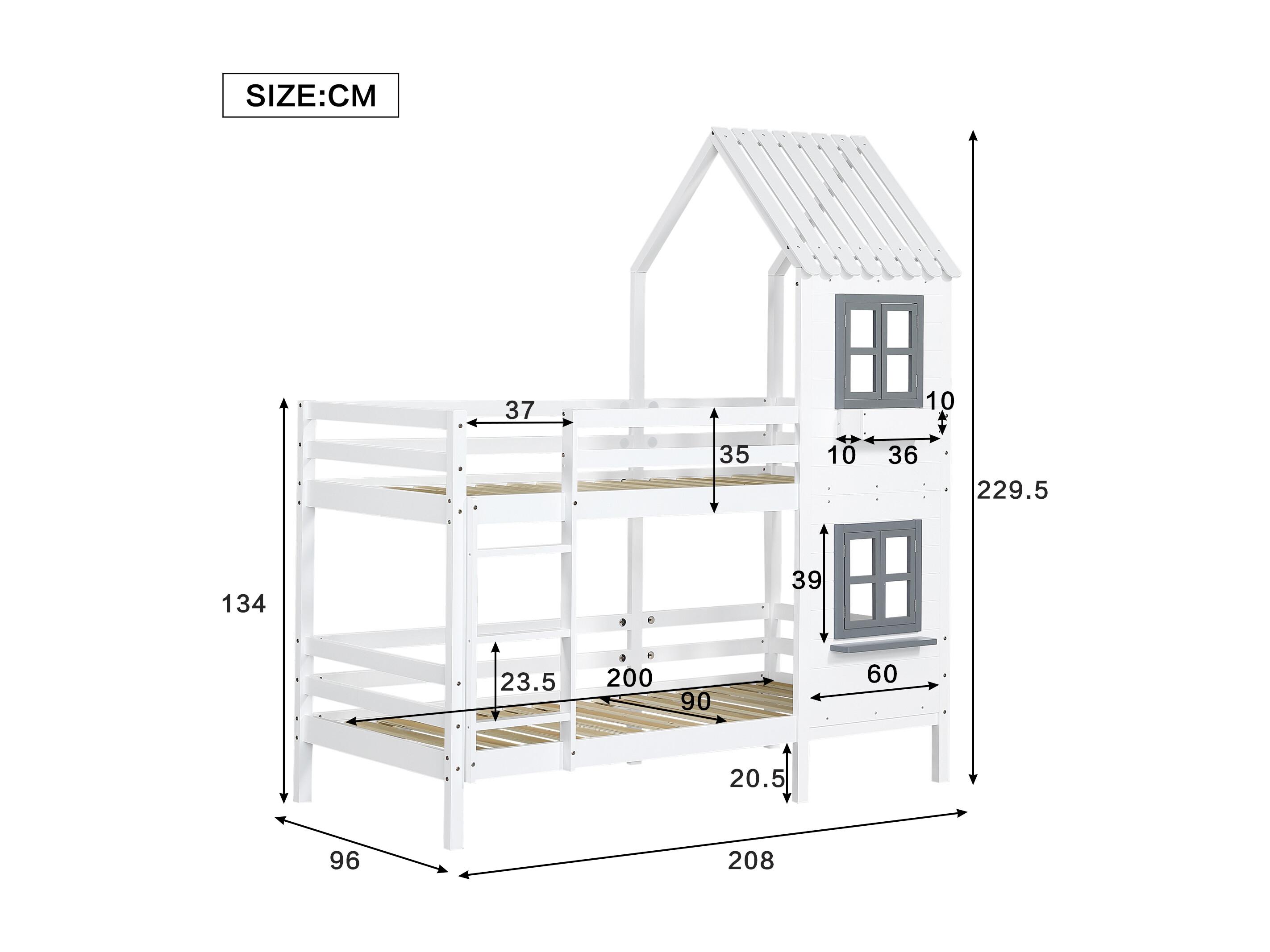 Cama beliche infantil tipo cabine branca 90x200cm com escadas, janelas e guarda-corpos, colchão não incluído