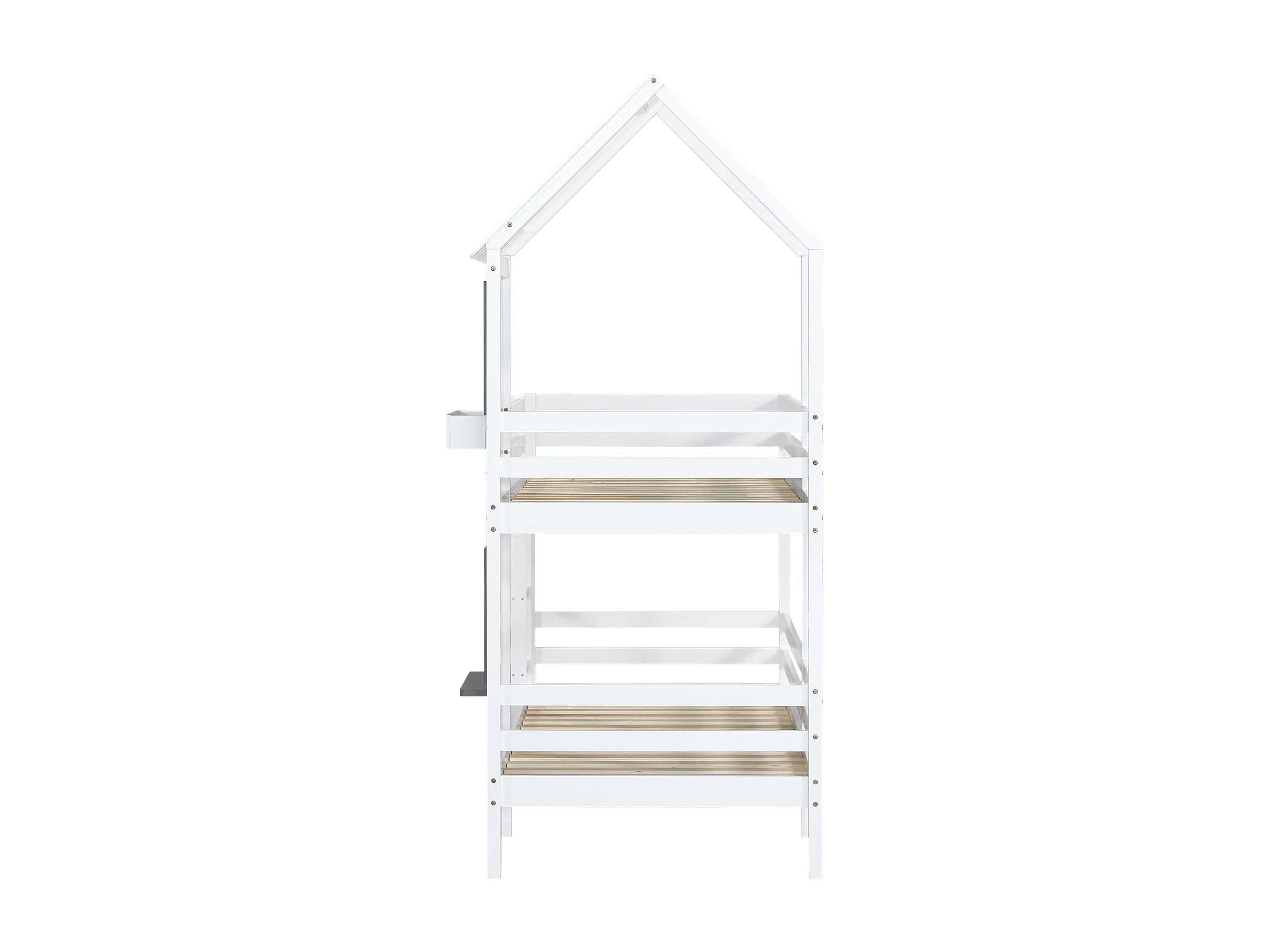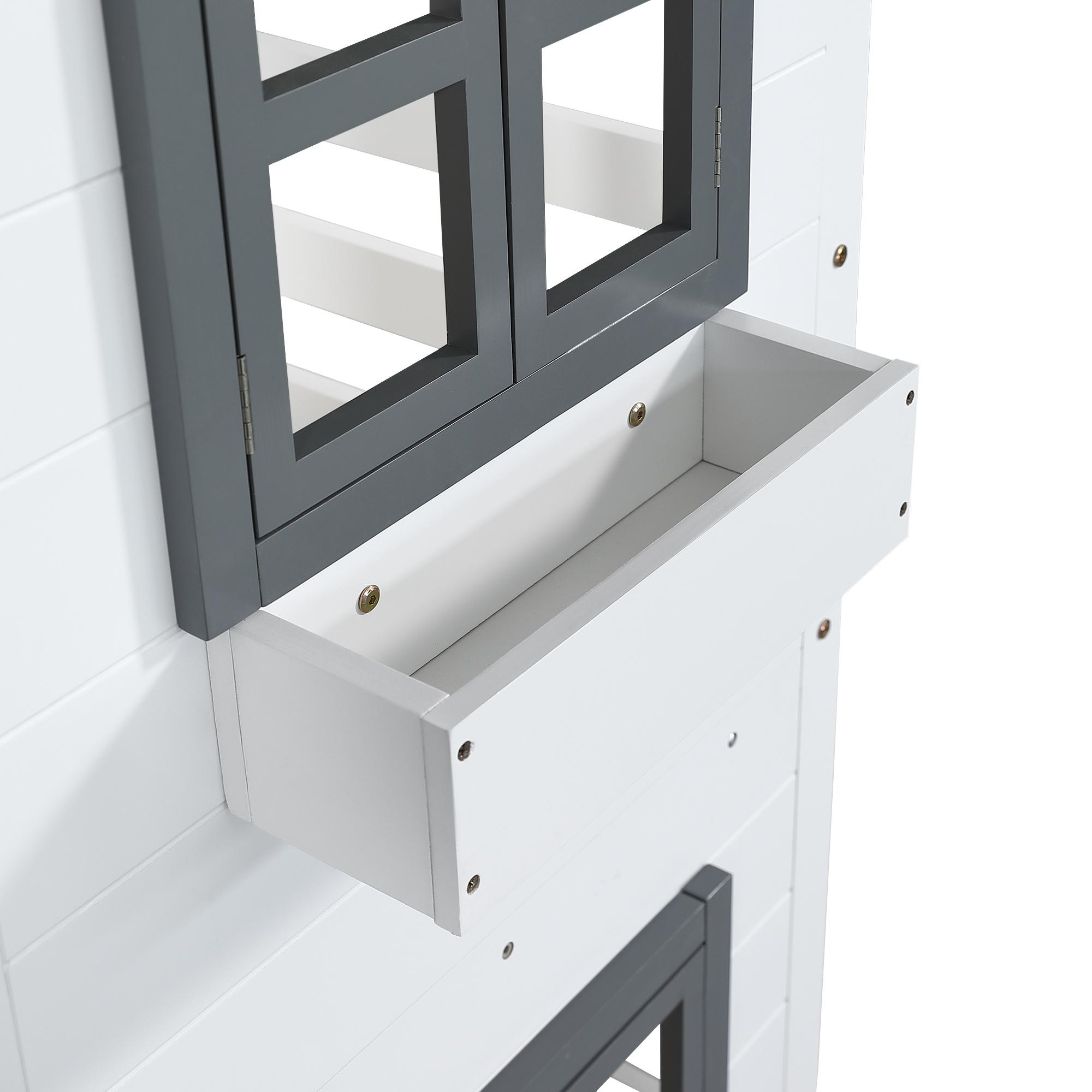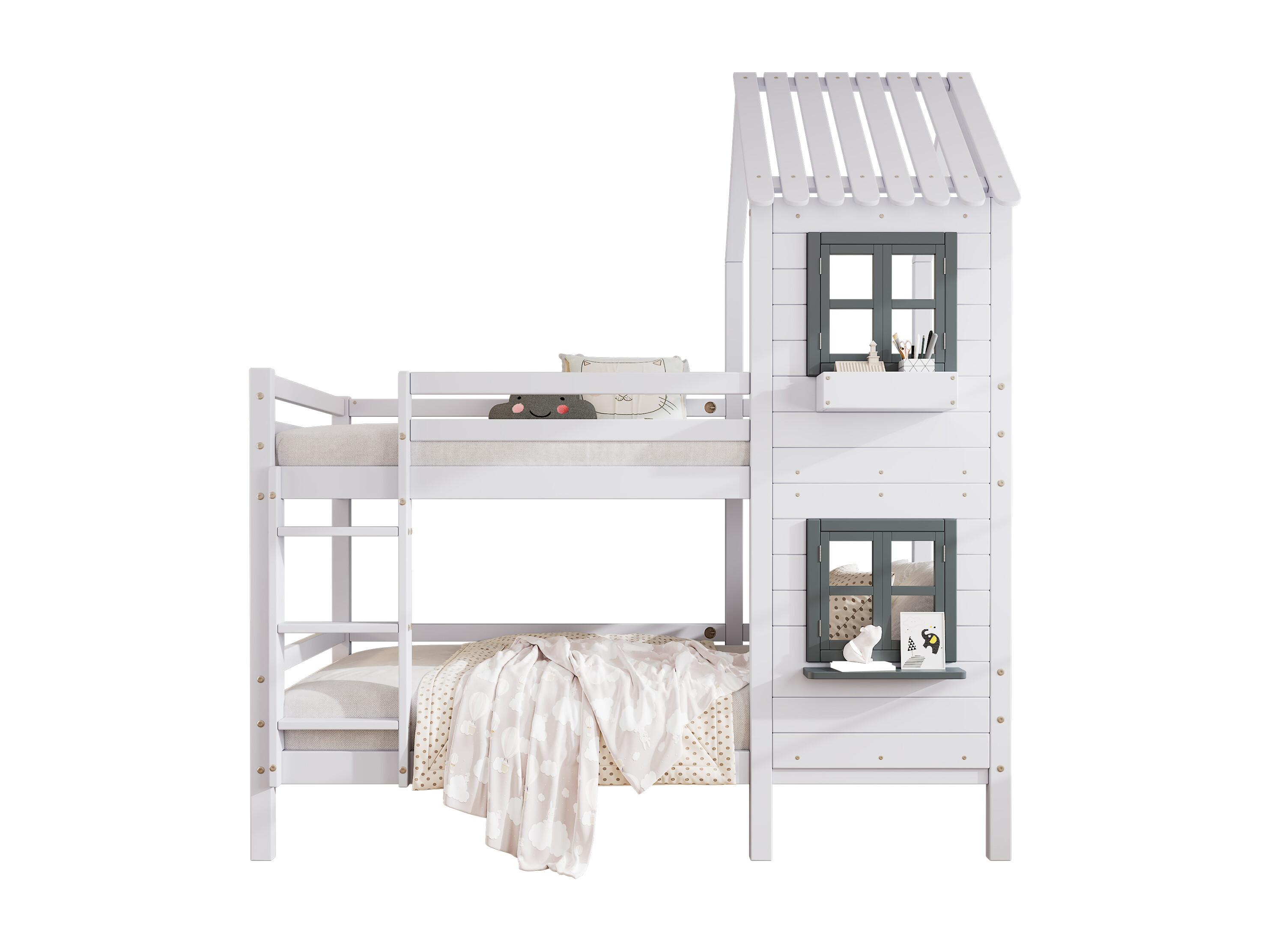 Cama beliche infantil tipo cabine branca 90x200cm com escadas, janelas e guarda-corpos, colchão não incluído