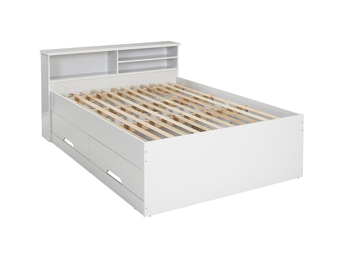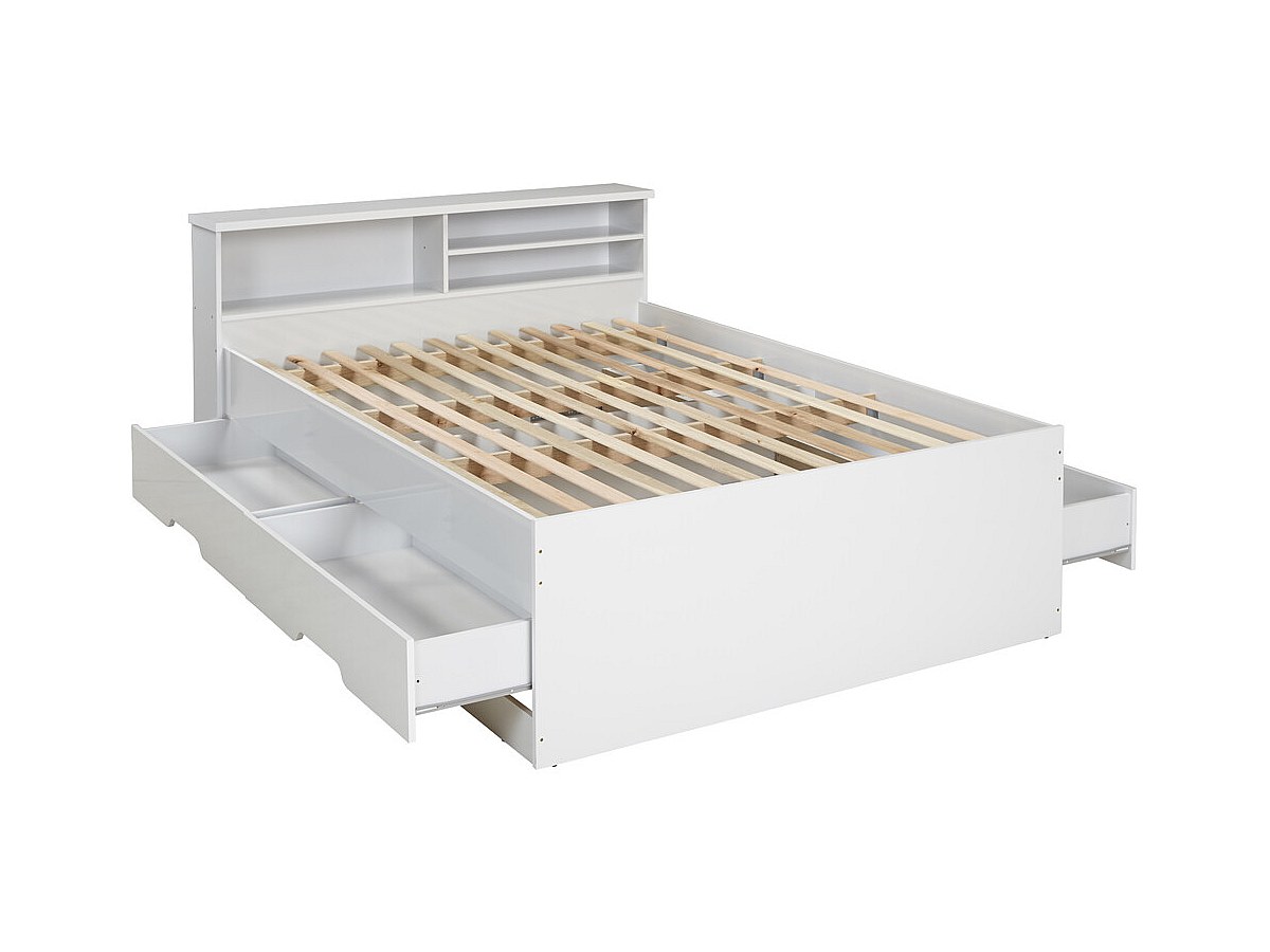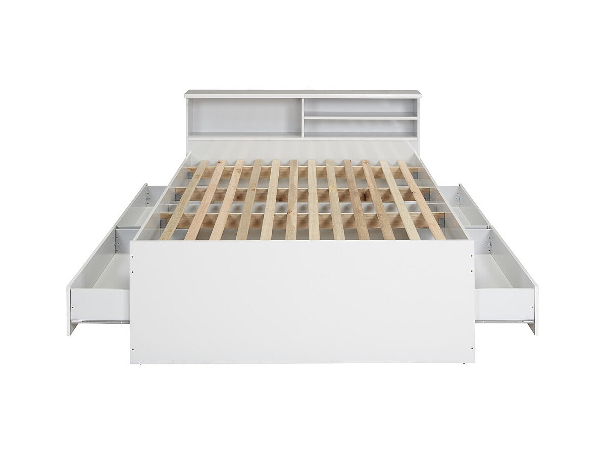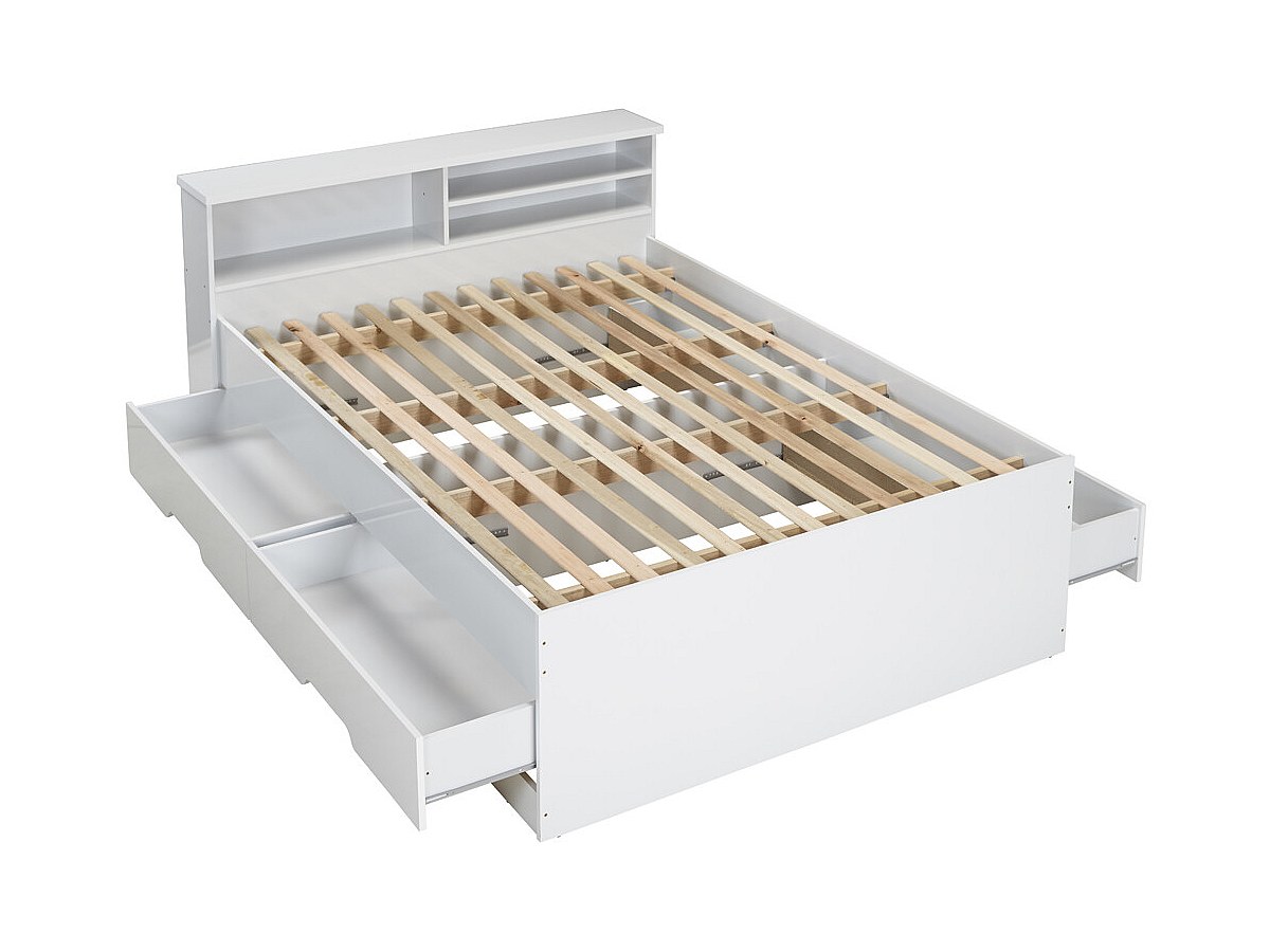 Cama BORIS com gavetas e arrumação - branco - 140 x 190 cm