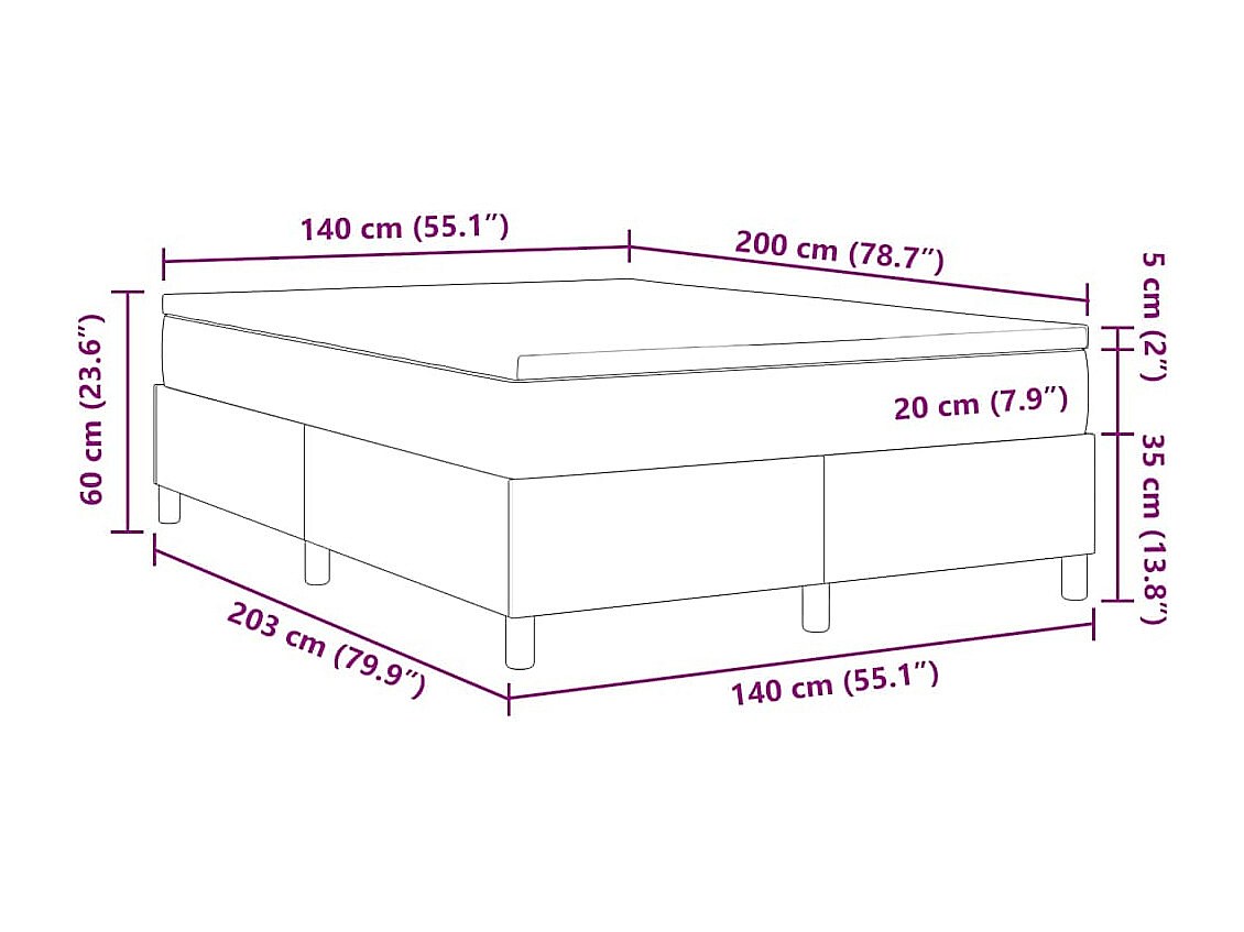 Cama Box com colchão Cinzento-acastanhado 140 x 200 cm tecido