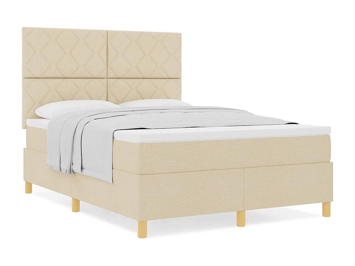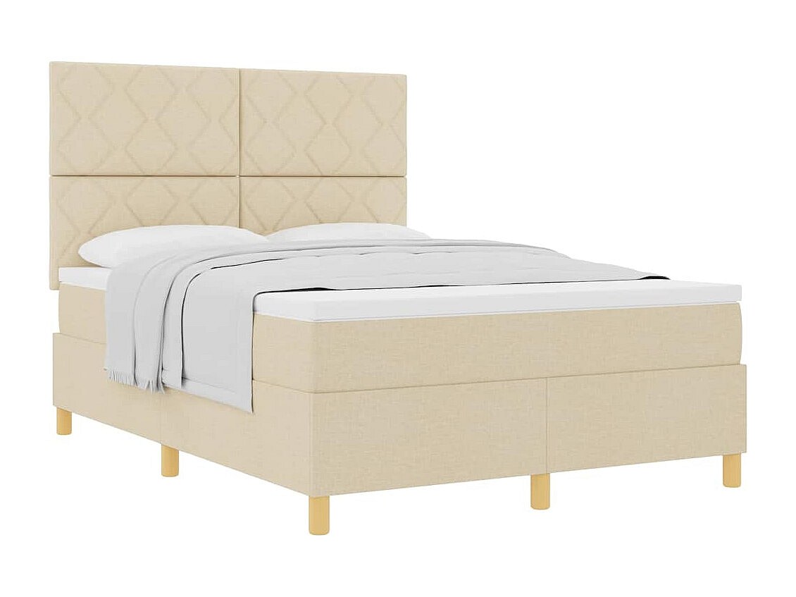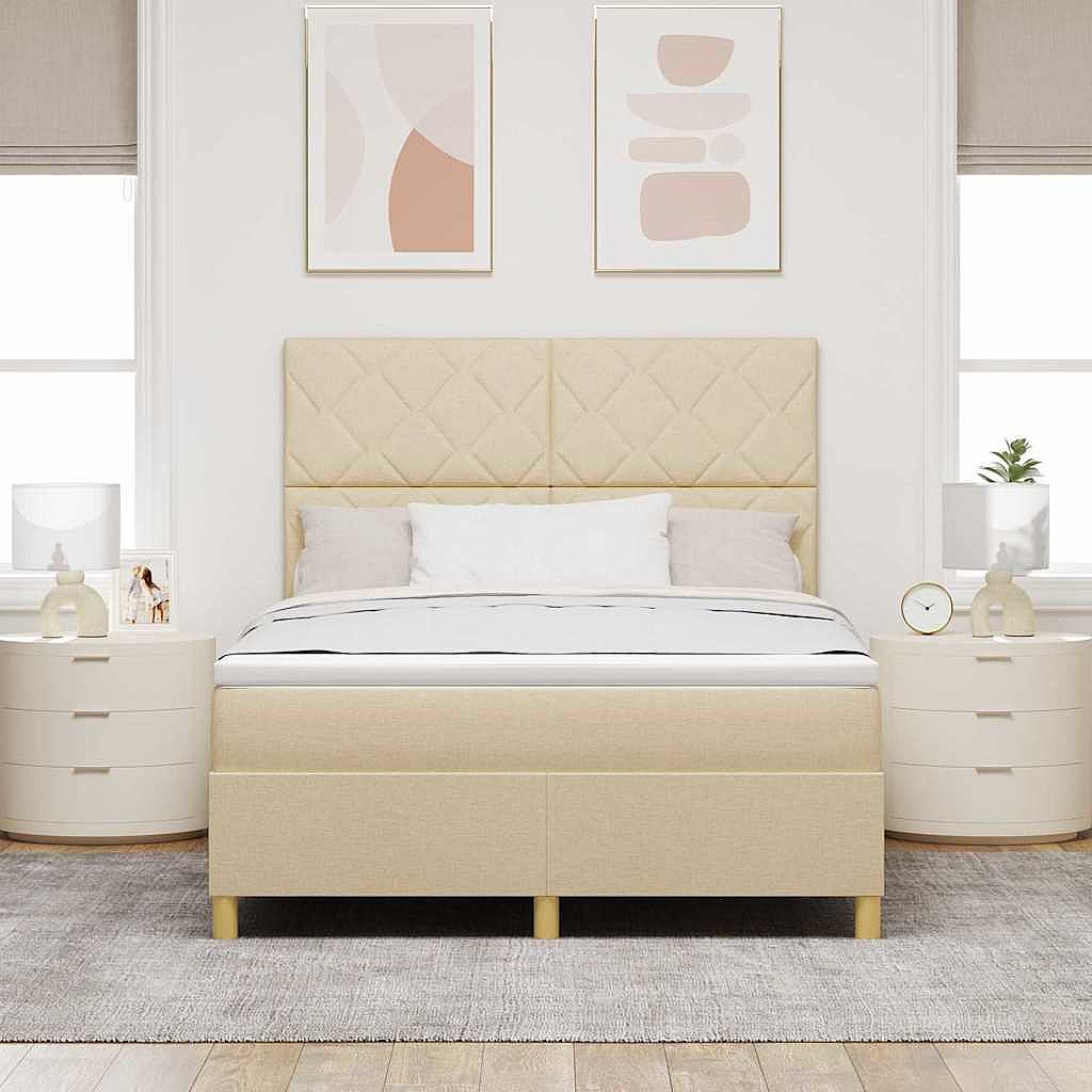 Cama Box com cabeceira Creme 160 x 200 cm tecido