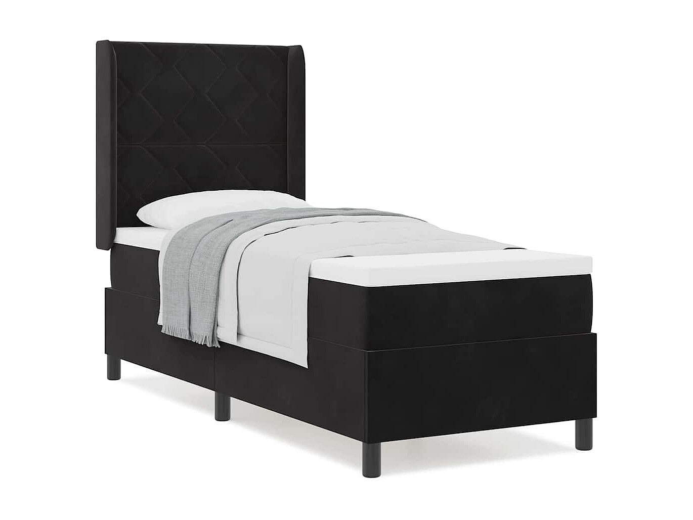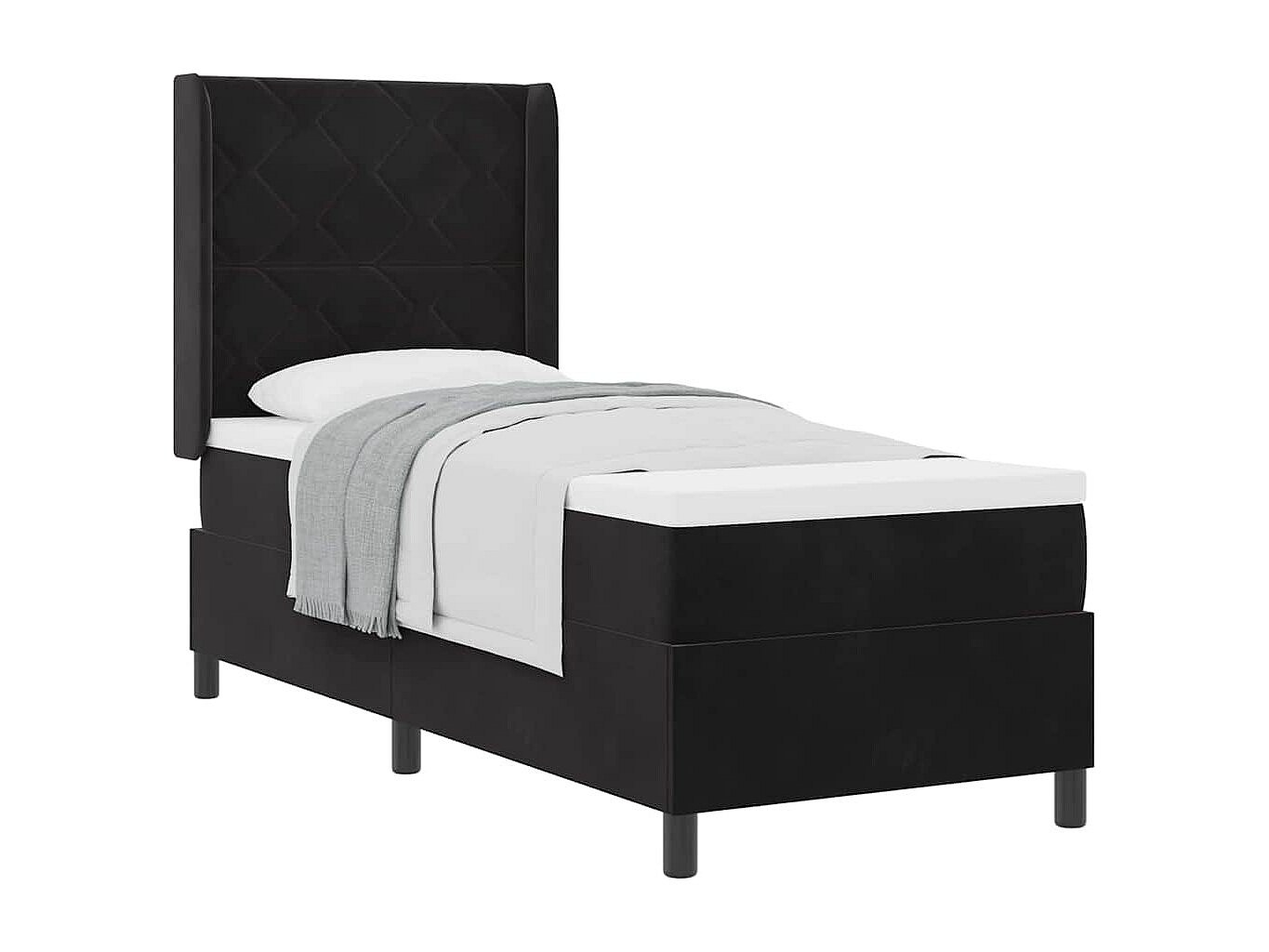Cama Box com cabeceira Preto 80 x 200 cm Veludo