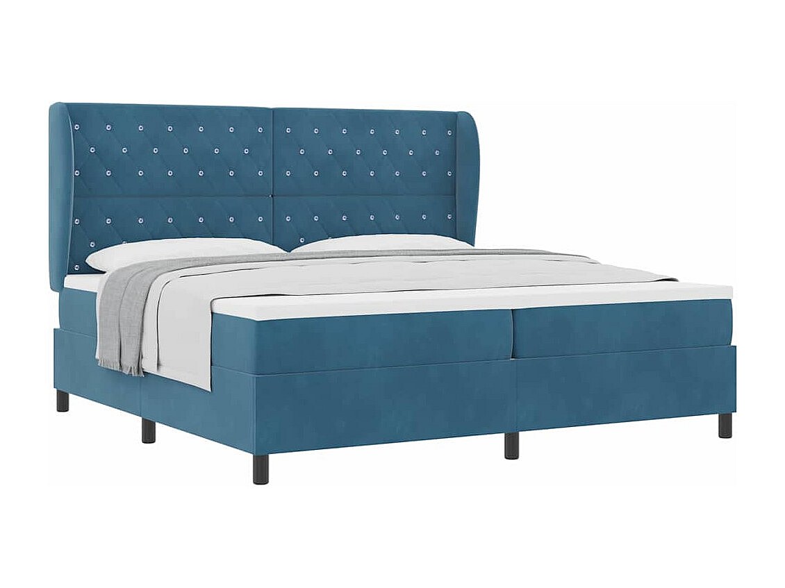 Cama Box com colchão Azul escuro 200 x 200 cm Veludo