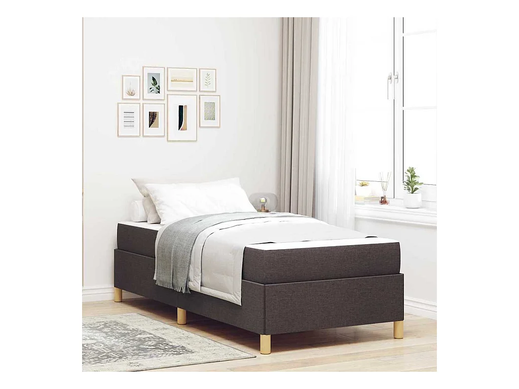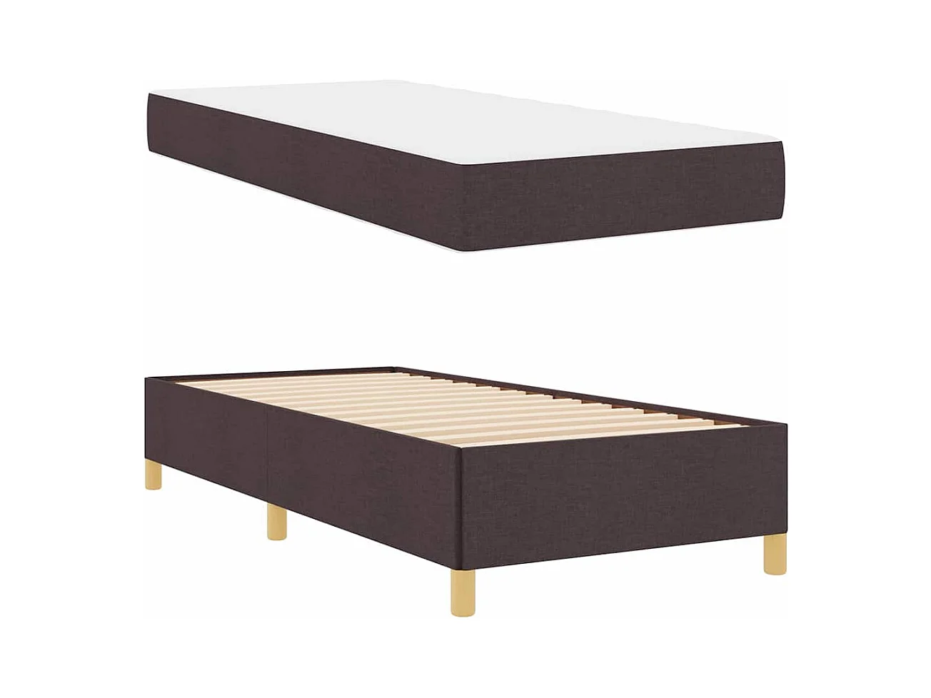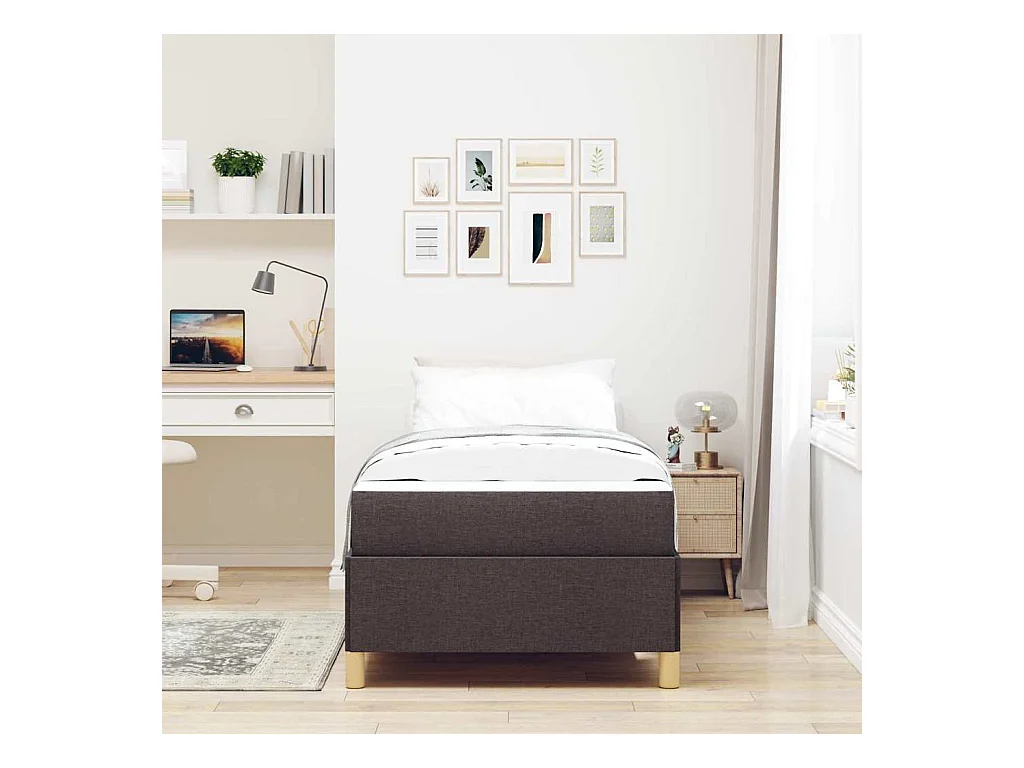 Cama Box com colchão Branco e Marrom escuro 90 x 190 cm tecido