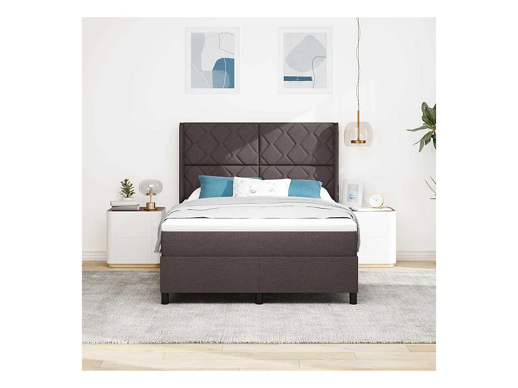 Cama Box com colchão Marrom Escuro 140 x 200 cm tecido