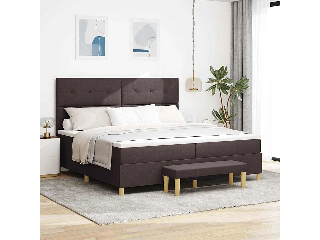 Cama Box com colchão Castanho escuro 200 x 200 cm tecido