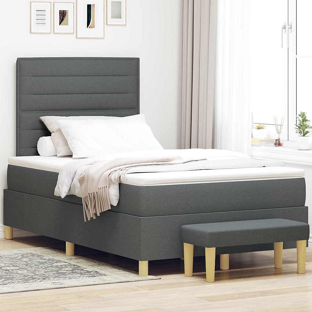 Cama Box com colchão Cinza Escuro 120 x 190 cm tecido
